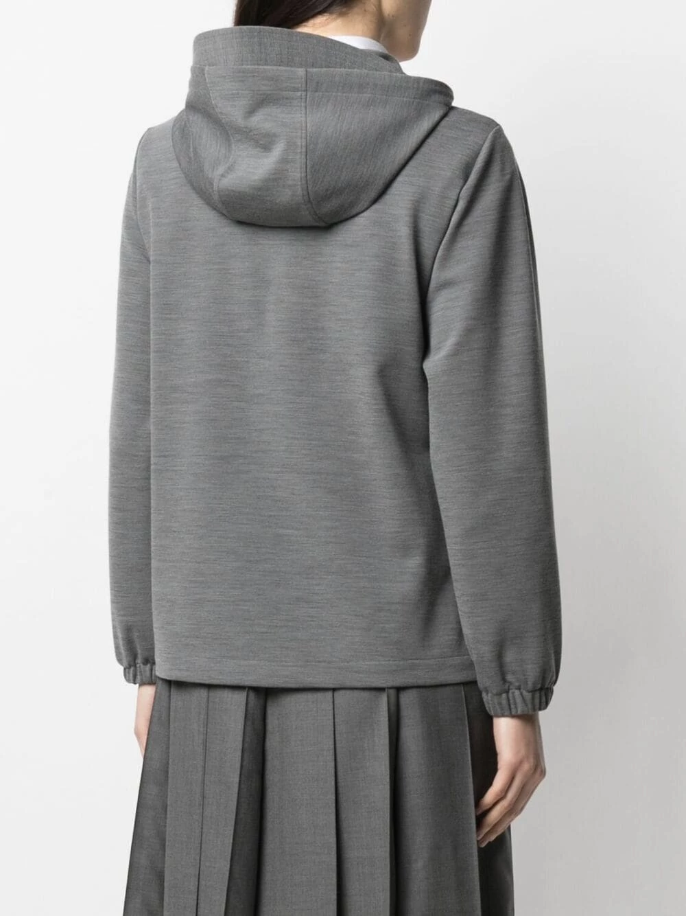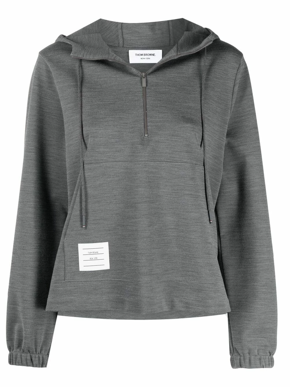 Your springtime wardrobe is in need of a little warmth and we have just the thing. This cosy wool-blend half-zip hoodie by Thom Browne, decorated with the brand’s signature logo patch to the front. Told you so.