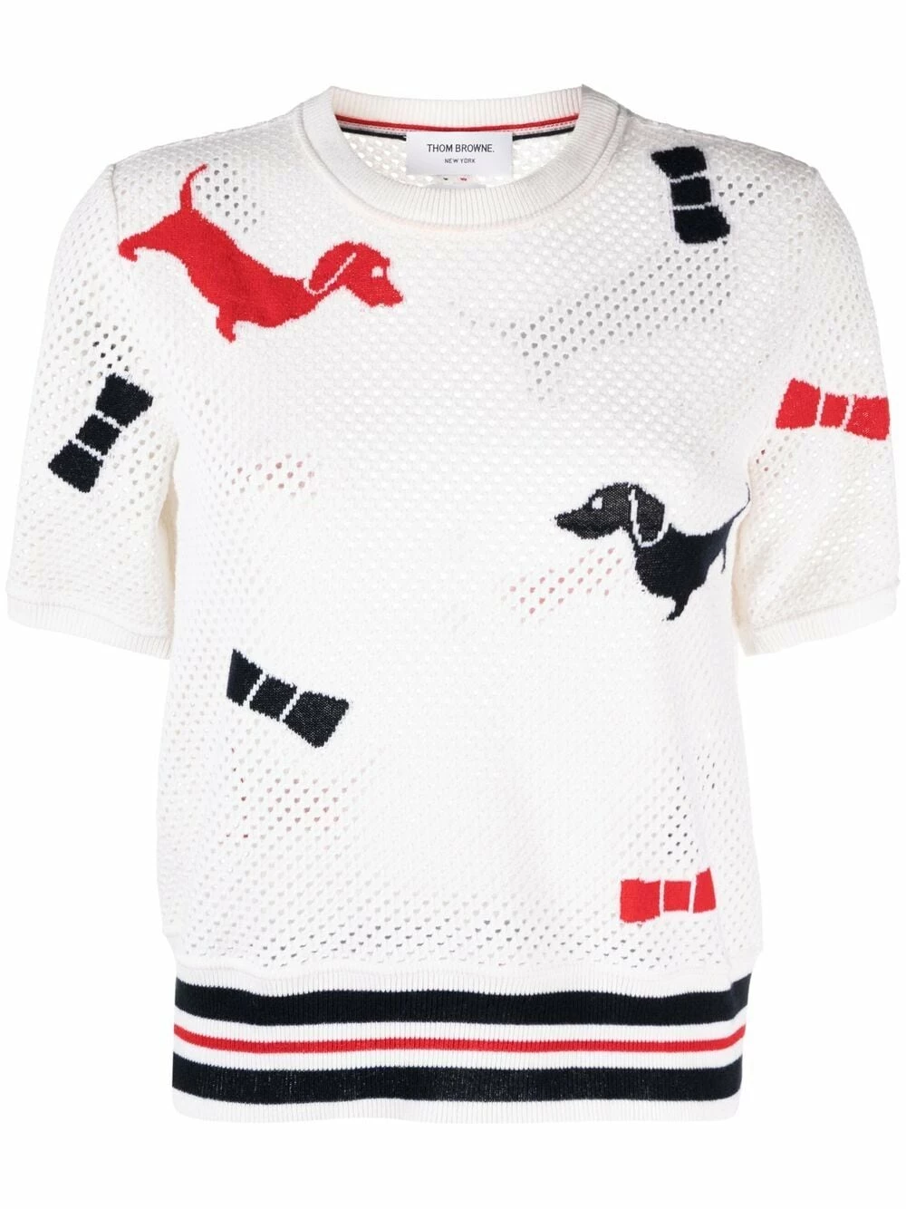 It’s Hector’s time to shine. Add a quirky touch in this intarsia-knit T-shirt from Thom Browne. It’s set to be your new best friend.