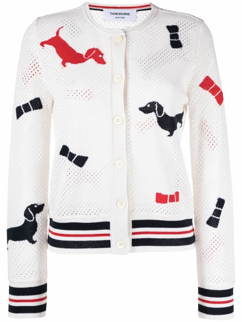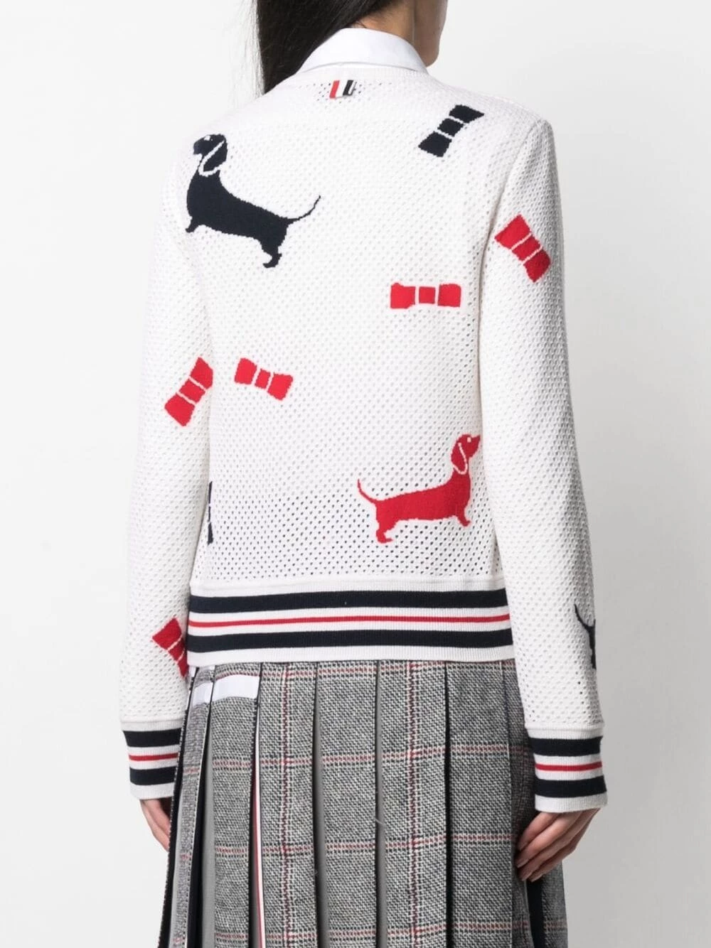 You always wanted a dog…but the landlord said no. Live out your dreams in this Hector-motif cardigan from Thom Browne. No walks required.