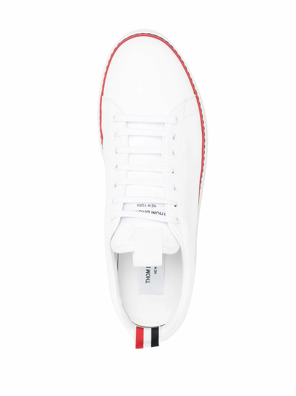 Kick back and relax in a pair of these Heritage canvas sneakers from Thom Browne. Designed with a lace-up fastening, this laid-back pair have been detailed with a signature grosgrain loop tab at the heel. Cool, casual and care-free.