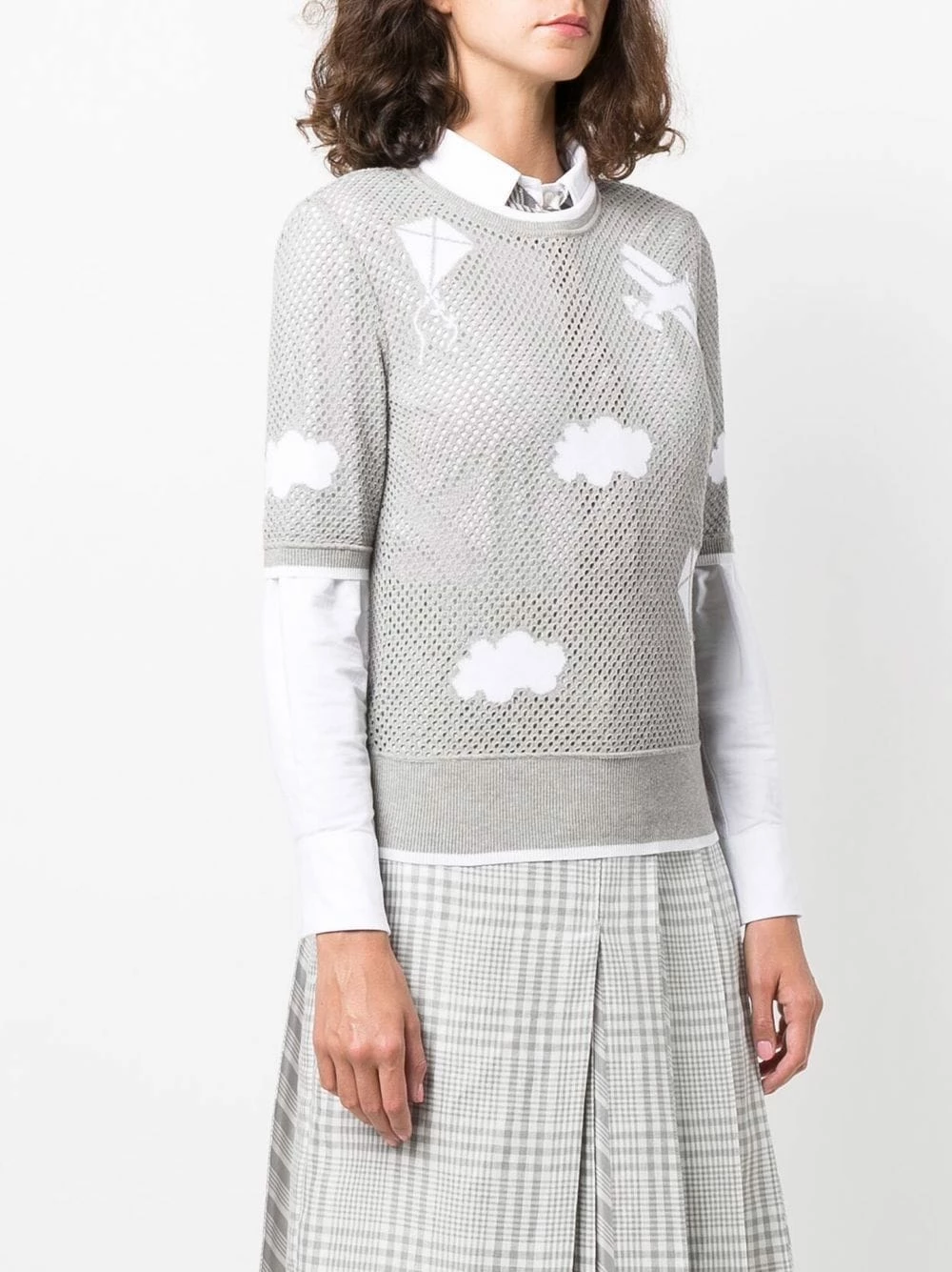 Since the label’s launch in 2001, New York-based Thom Browne has continuously presented collections of tailored separates with a twist. A fine example is this T-shirt, which takes the traditional short-sleeve silhouette and updates it with intarsia-knit motifs atop the breathable mesh design for a contemporary take on a classic.