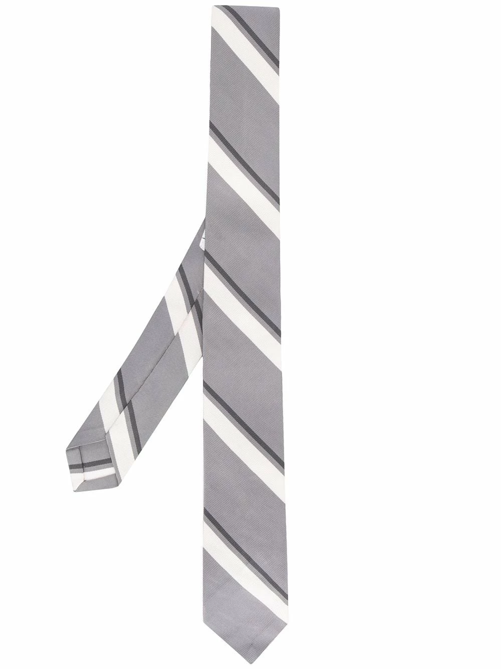Always choose elegance! Constructed from a silk-cotton blend, this jacquard bold rep stripe classic tie from Thom Browne can keep your stylish levels high no matter what. Time to suit up…