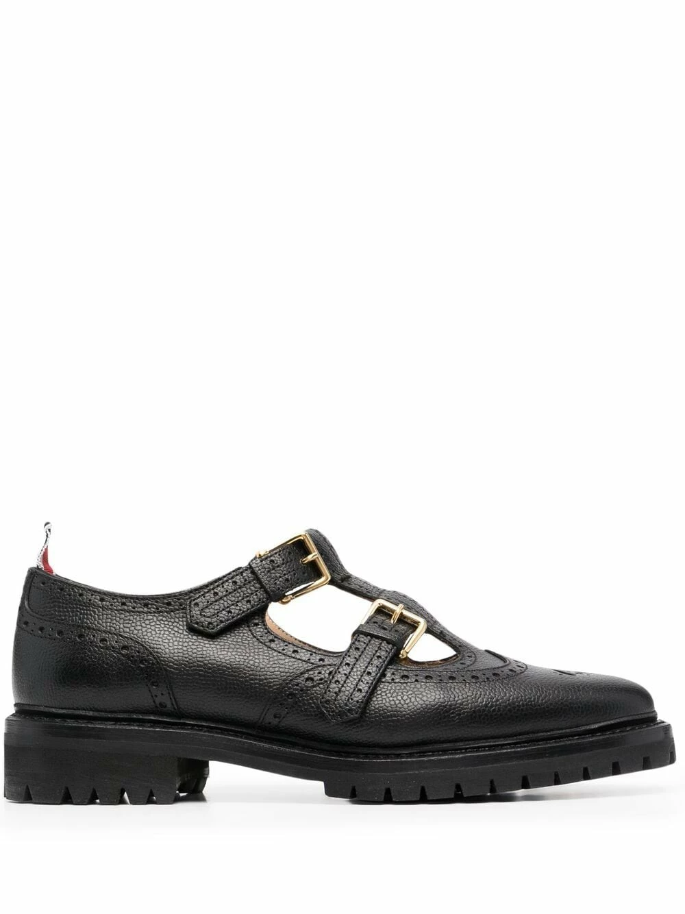Put your foot in a bolder direction with Thom Browne. This pebbled black leather pair of shoes are ready to take centre stage in your wardrobe and the streets. Buckle up and stride on out.