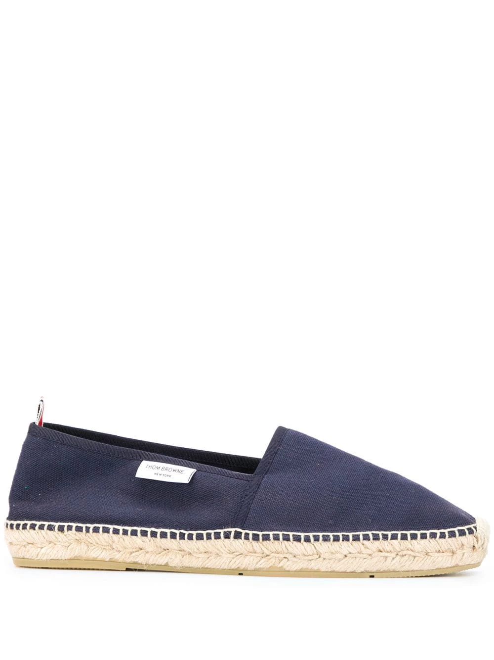Putting their take on the classic summer shoe, Thom Browne presents these logo-label canvas espadrilles. Designed with a signature grosgrain loop tab and a braided raffia midsole, these slip-on pair are the perfect no-fuss shoe for warmer climes.