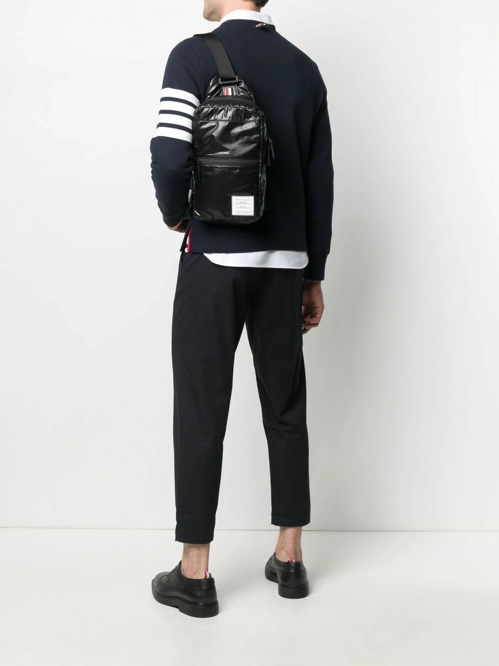 For AW21, Thom Browne presents its version of the classic backpack. This slightly padded accessory is distinguished by its single crossbody strap, while a logo patch and signature grosgrain loop tab add a subtle branded finish.