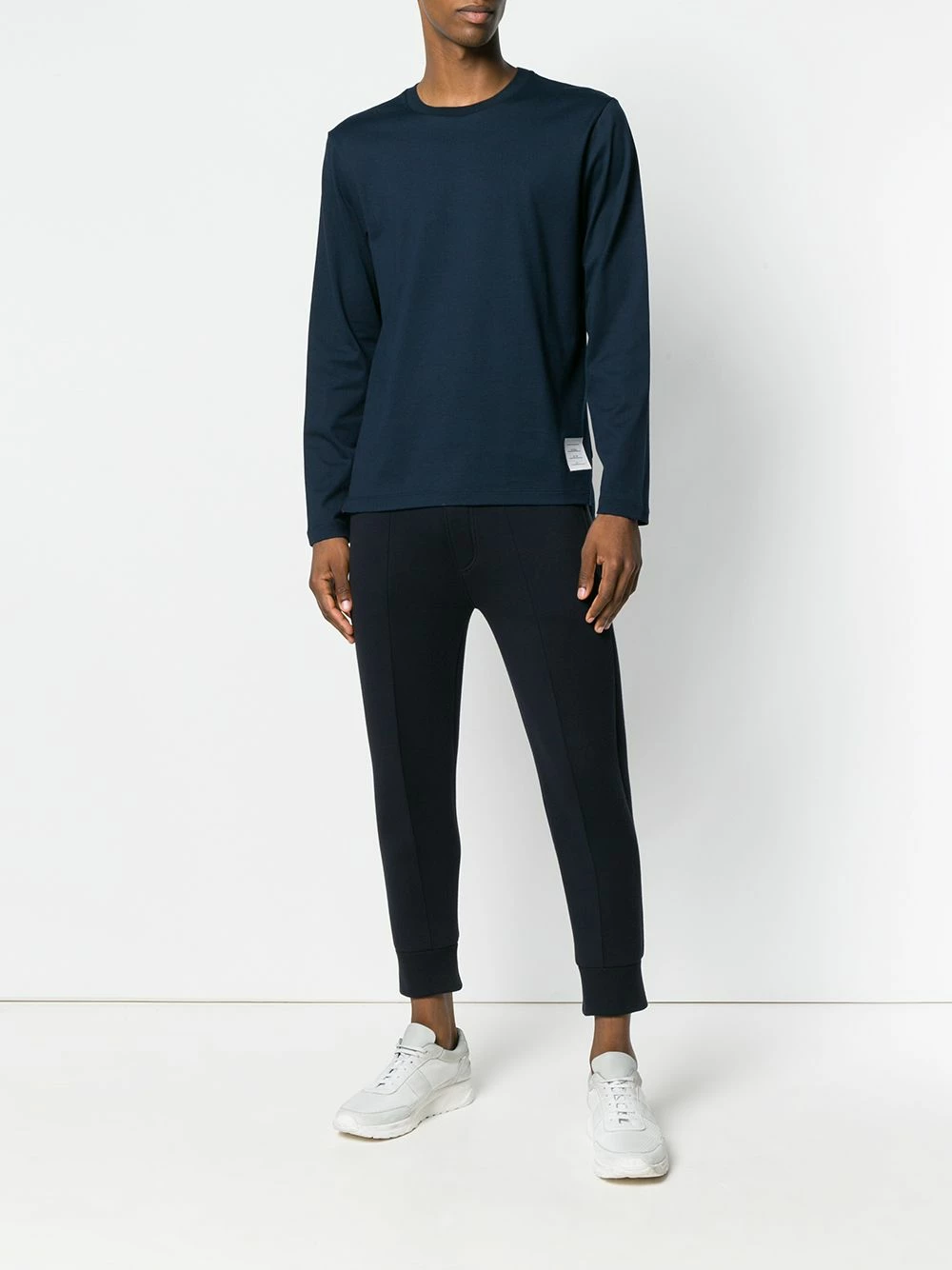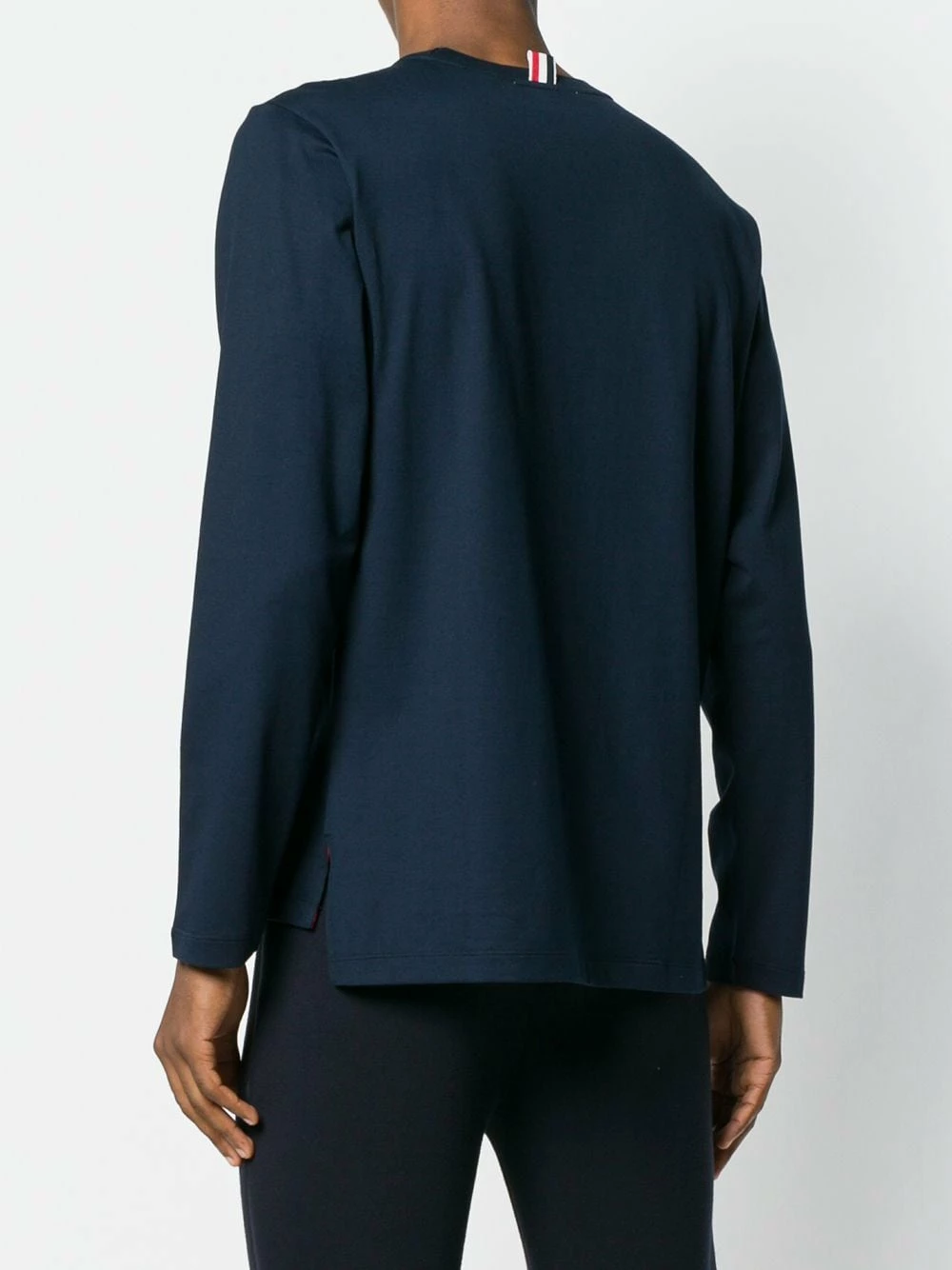 Blue cotton loose fit longsleeved T-shirt from Thom Browne featuring a round neck.