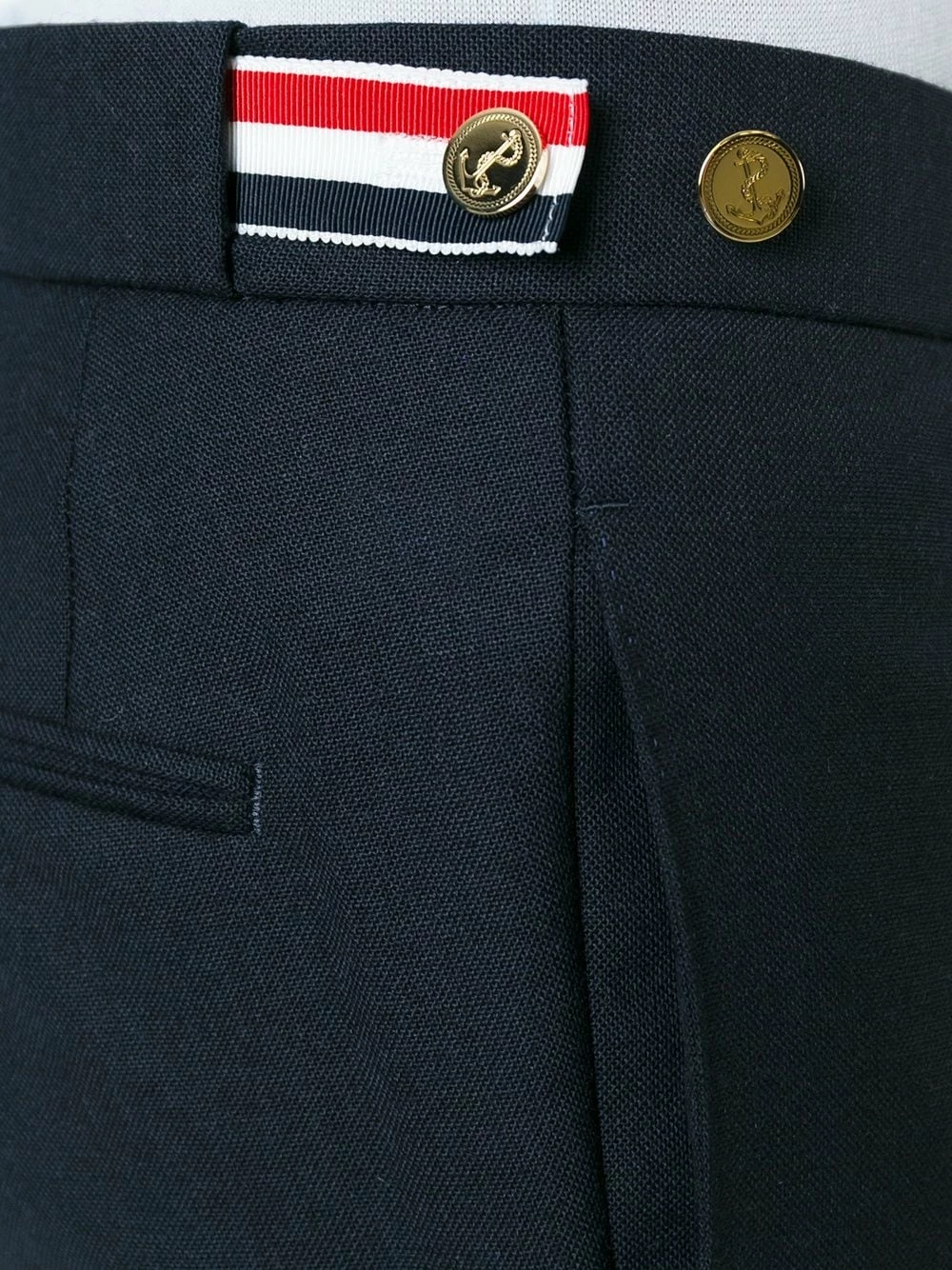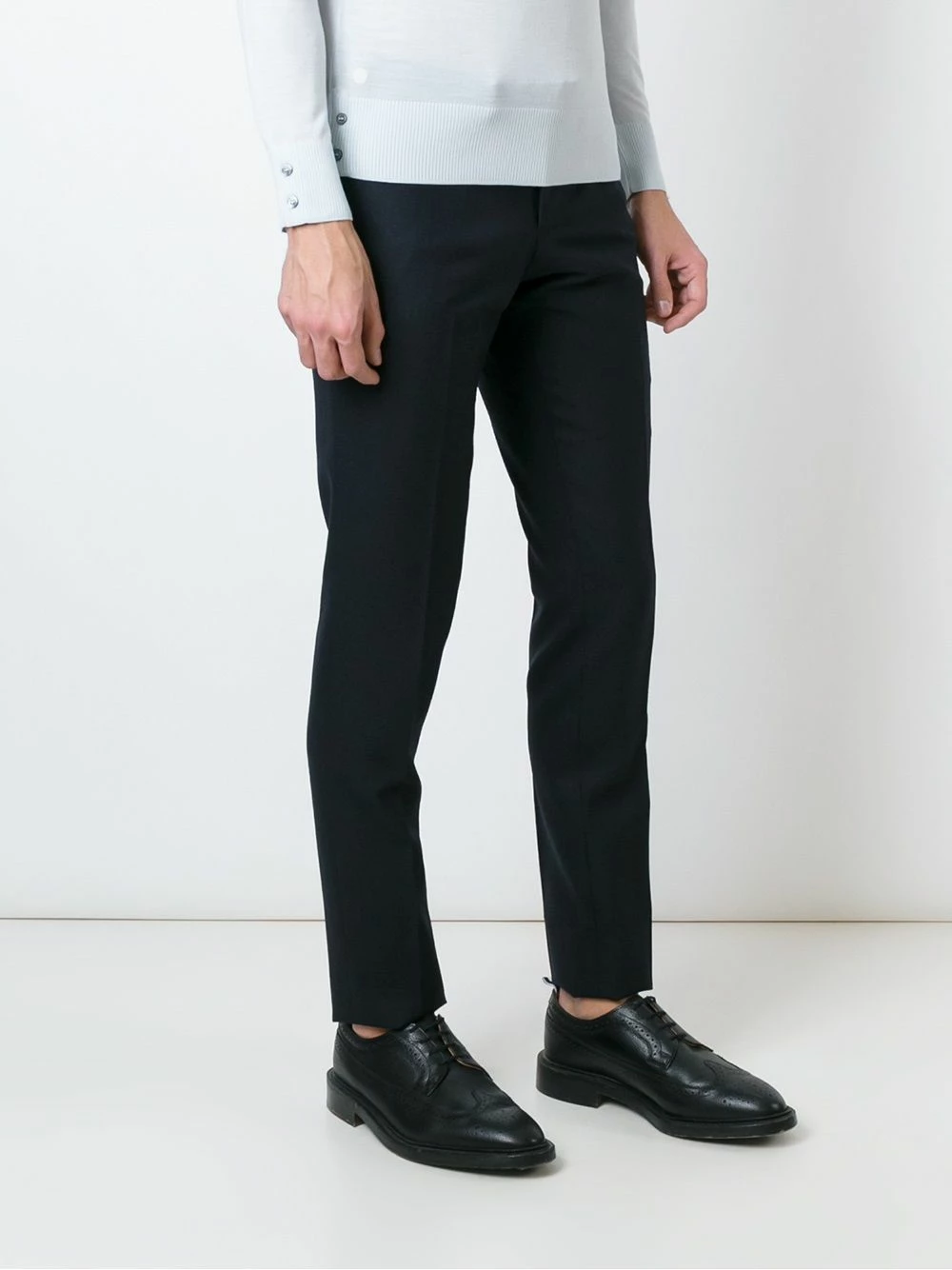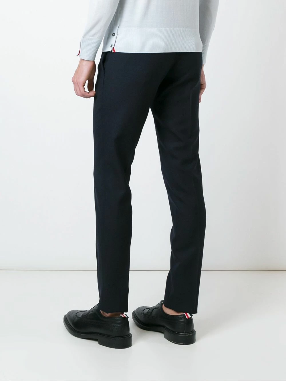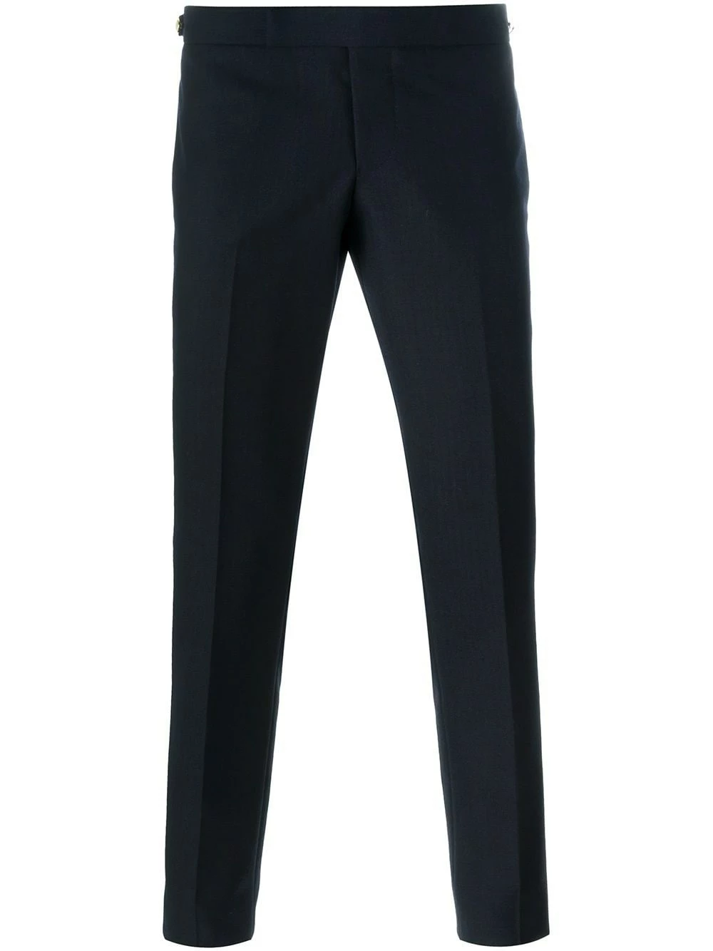 Blue wool Low Rise Skinny Side Tab Trouser In 2 Ply Fresco from Thom Browne.