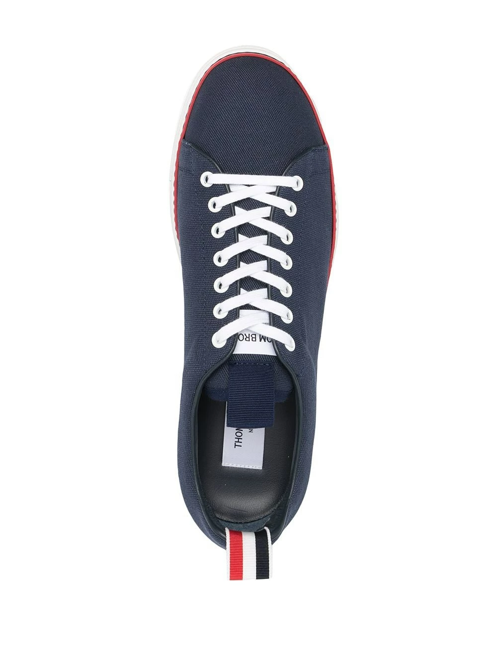 You have places to go and Thom Browne’s low-top sneakers are ready to take you there. Crafted from canvas and placed upon a rubber sole, these shoes will take you from A to B in style. Lace-up tight and stride out with confidence.