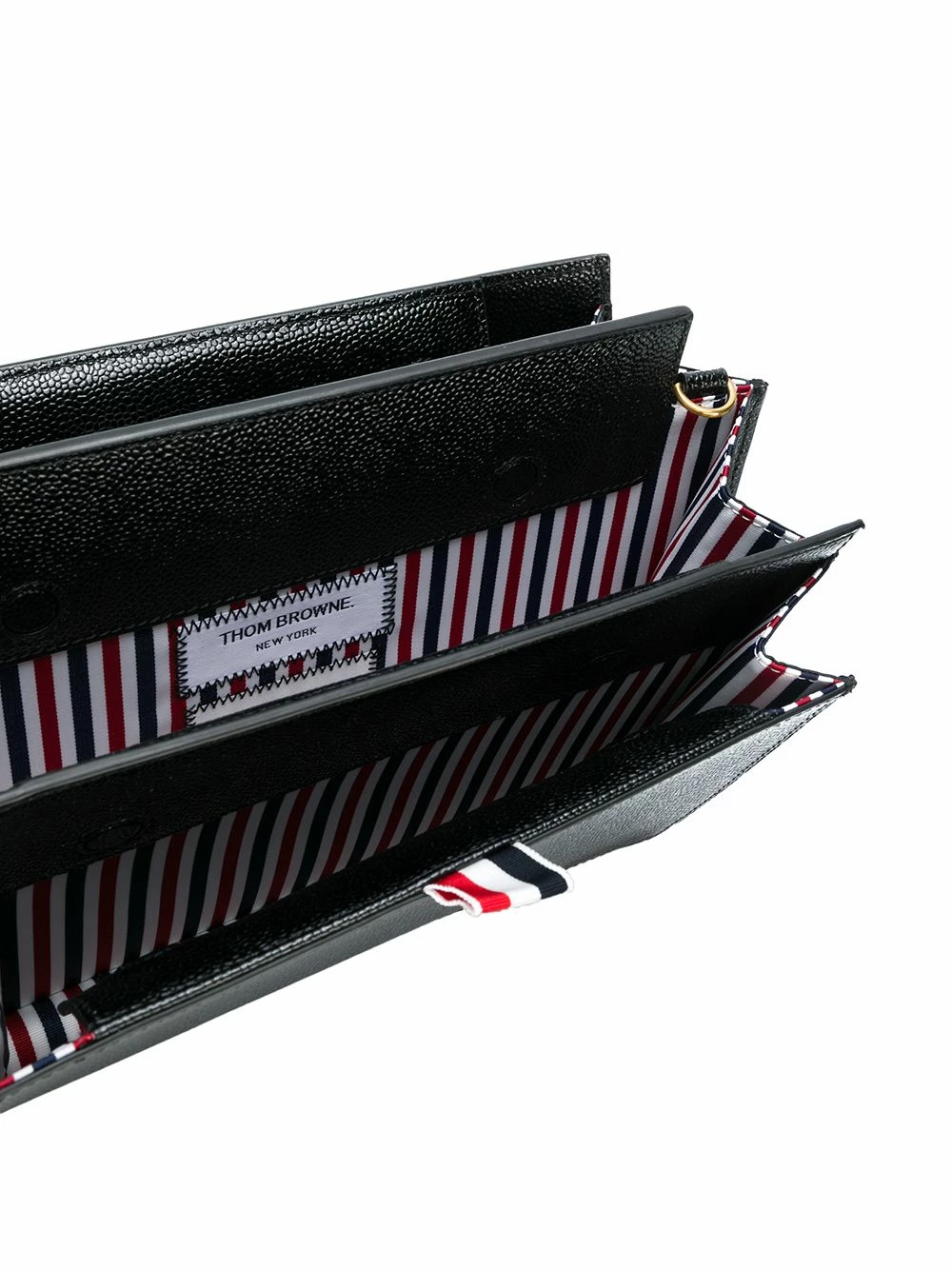 Thom Browne Lucido shoulder bag is crafted from black grainy leather and cut to an accordion design that creates a roomy interior. The simple silhouette is adorned with the brand’s iconic grosgrain loop tag in navy-blue, red and white, while the gold-tone hardware adds a classic finish.