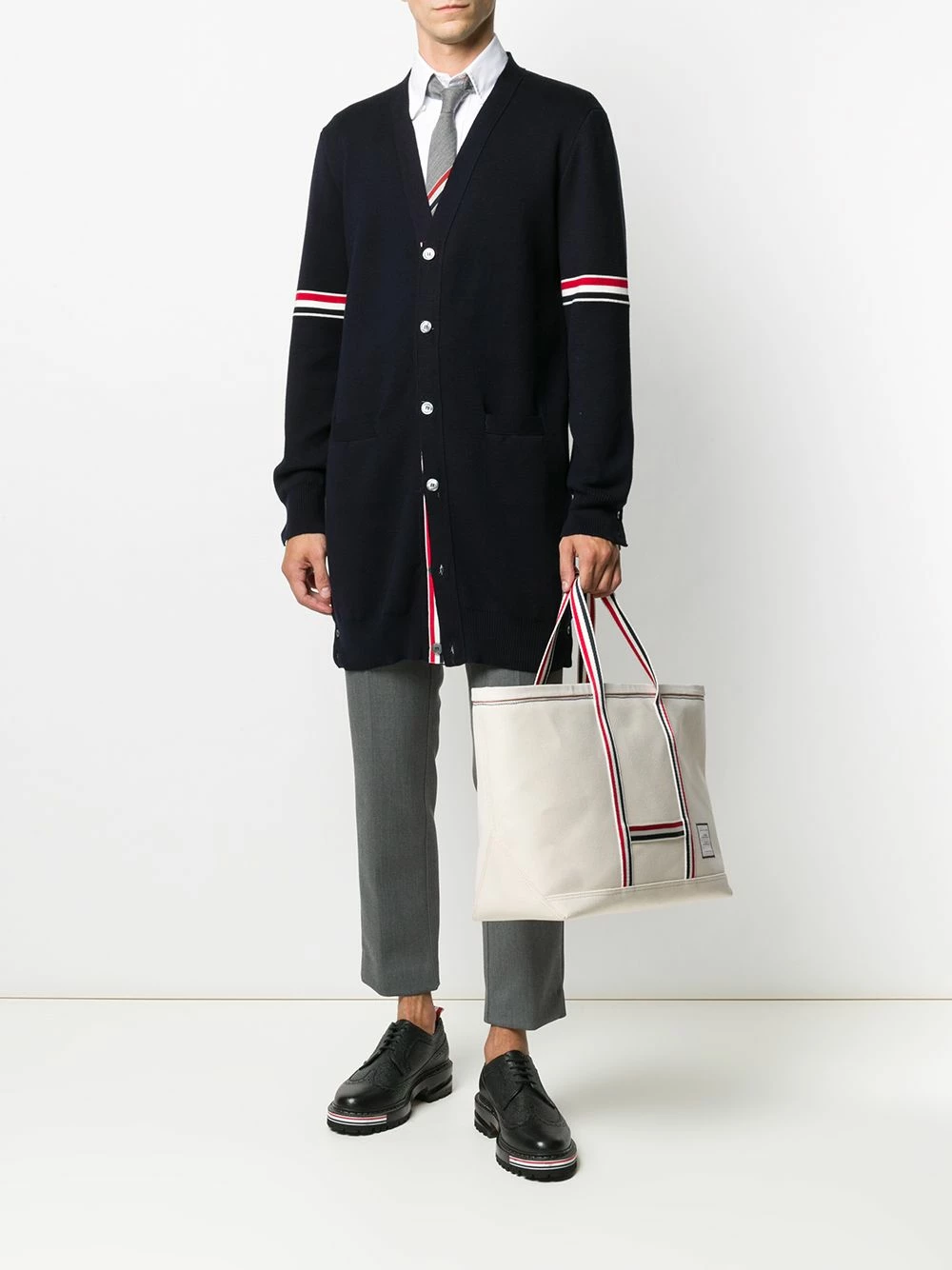 Whether you’re off to the beach or just heading out to run some errands, this roomy medium Tool tote bag from Thom Browne proves itself to be the perfect companion.