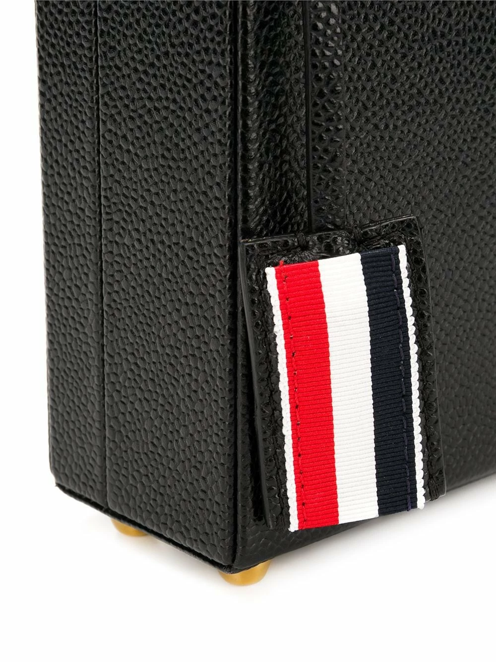 Carry your smallest essentials in style. This pebbled micro Attaché case from Thom Browne will be the piece you reach for every time you leave the house. And who could blame you? Featuring a pebbled leather texture, gold-tone hardware, a hinge closure, a flip-lock closure, a round top handle, an internal slip pocket, a RWB stripe, a detachable logo tag, a branded padlock detail and a RWB-detail chain strap.