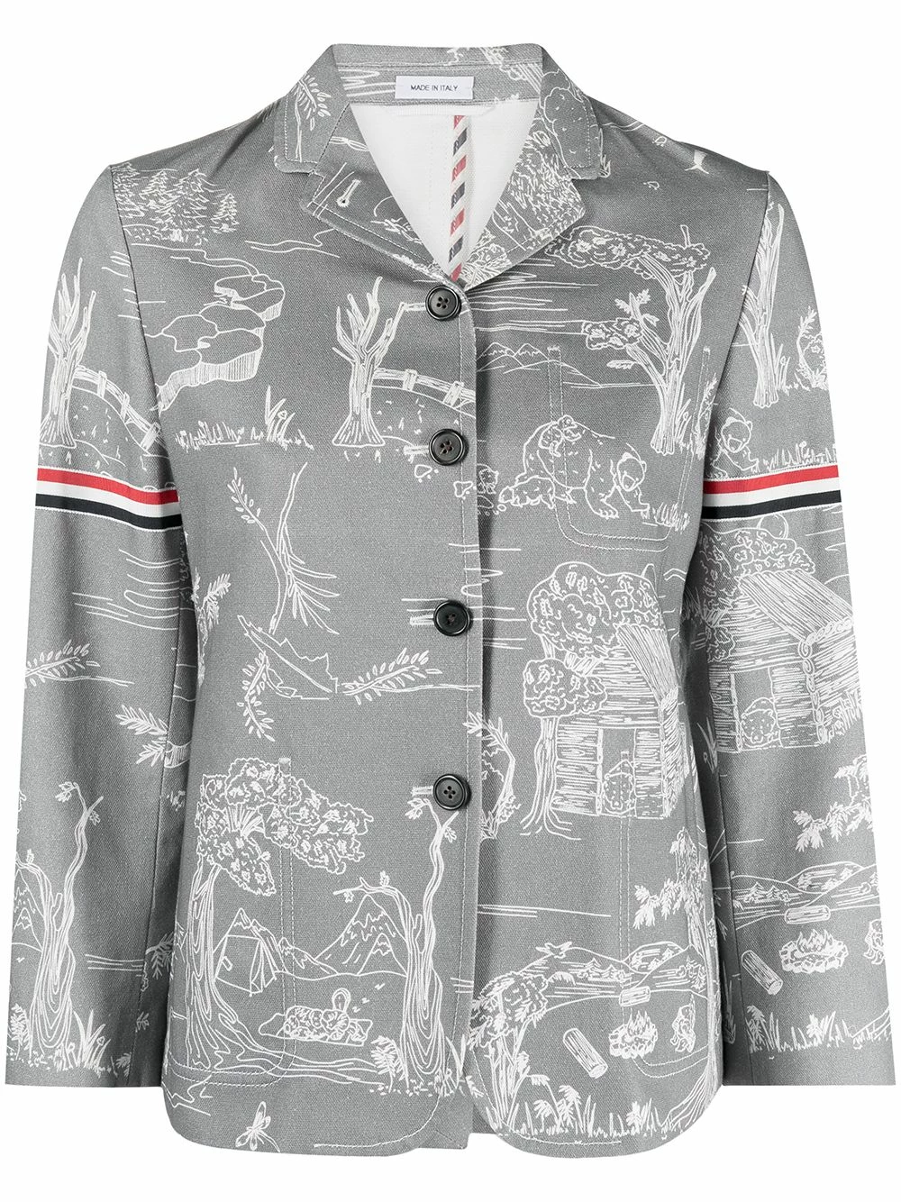 The expression ‘cherry on top’ commonly means that something special is added to something else that’s also very nice to make it just that much more enriched. That’s what will happen to your outfit today once you throw on this mix-print cotton blazer from Thom Browne before leaving the house. Right on point.