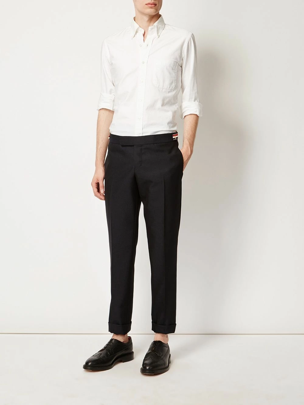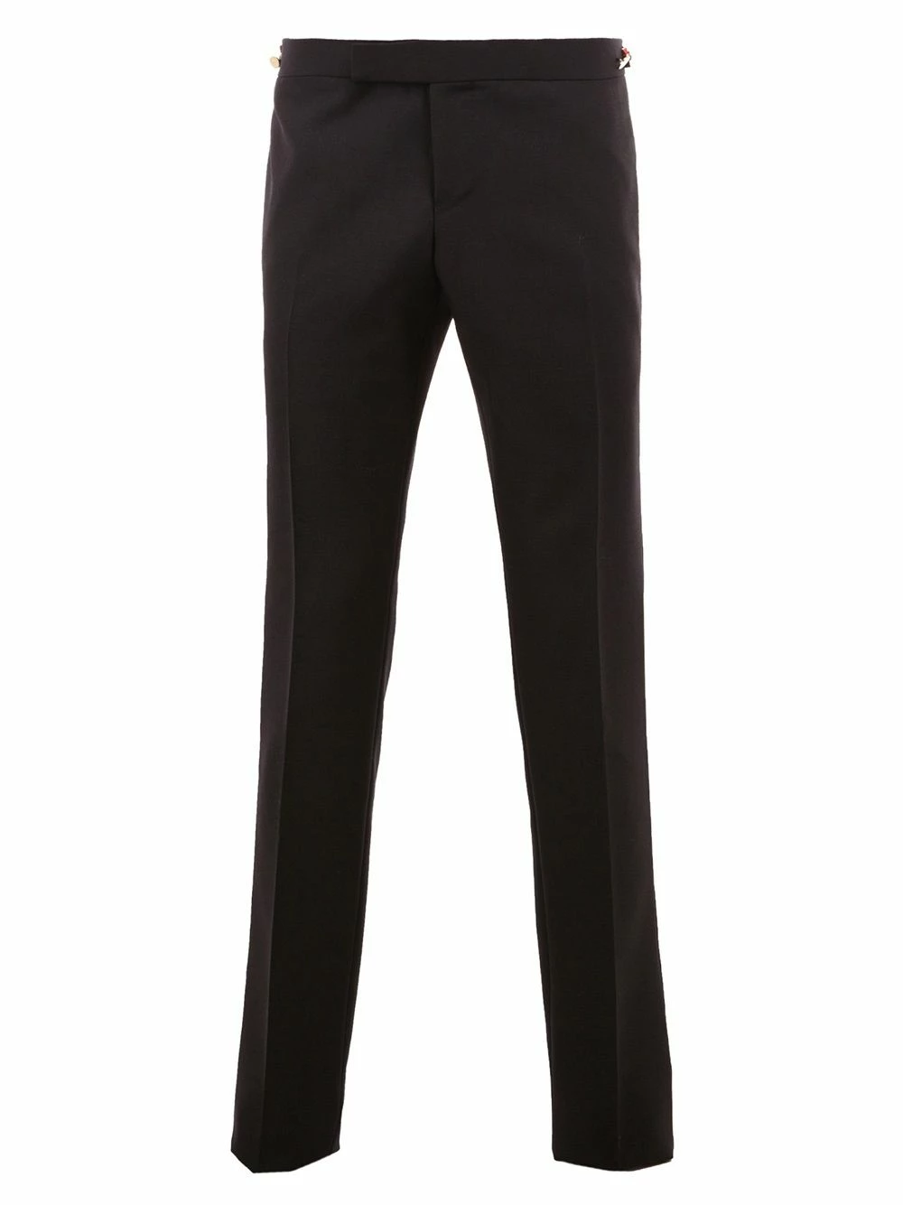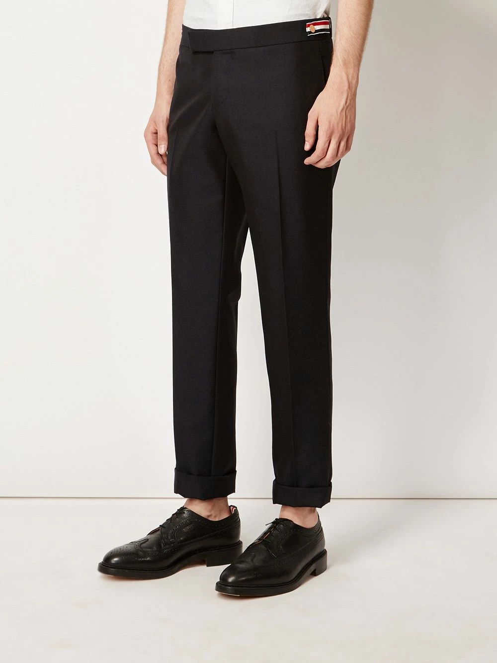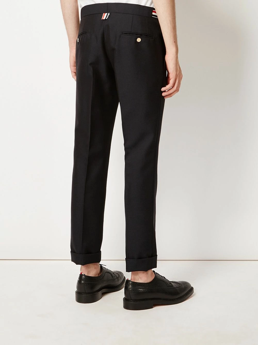 Black mohair-wool blend Mohair Wool Low-Rise Skinny Trouser from Thom Browne.
