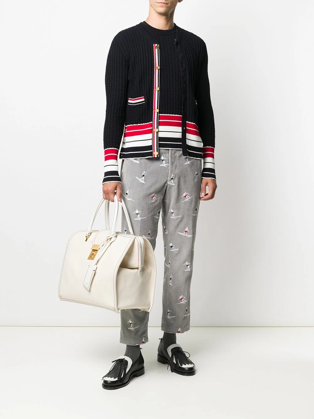You can always rely on Thom Browne for top-tier accessories. Look at this Mr. Thom soft strap canvas bag, for example. Sleek, luxurious with a distinct vintage feel, once it’s yours, you’ll never want to part with it. You’ve got yourself a new companion.