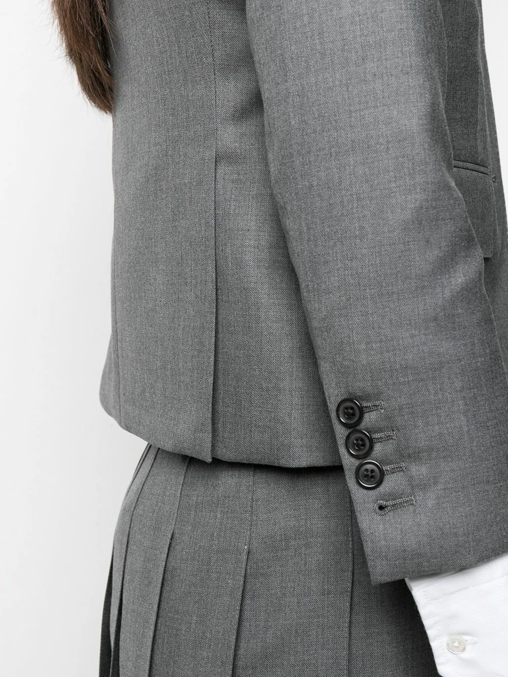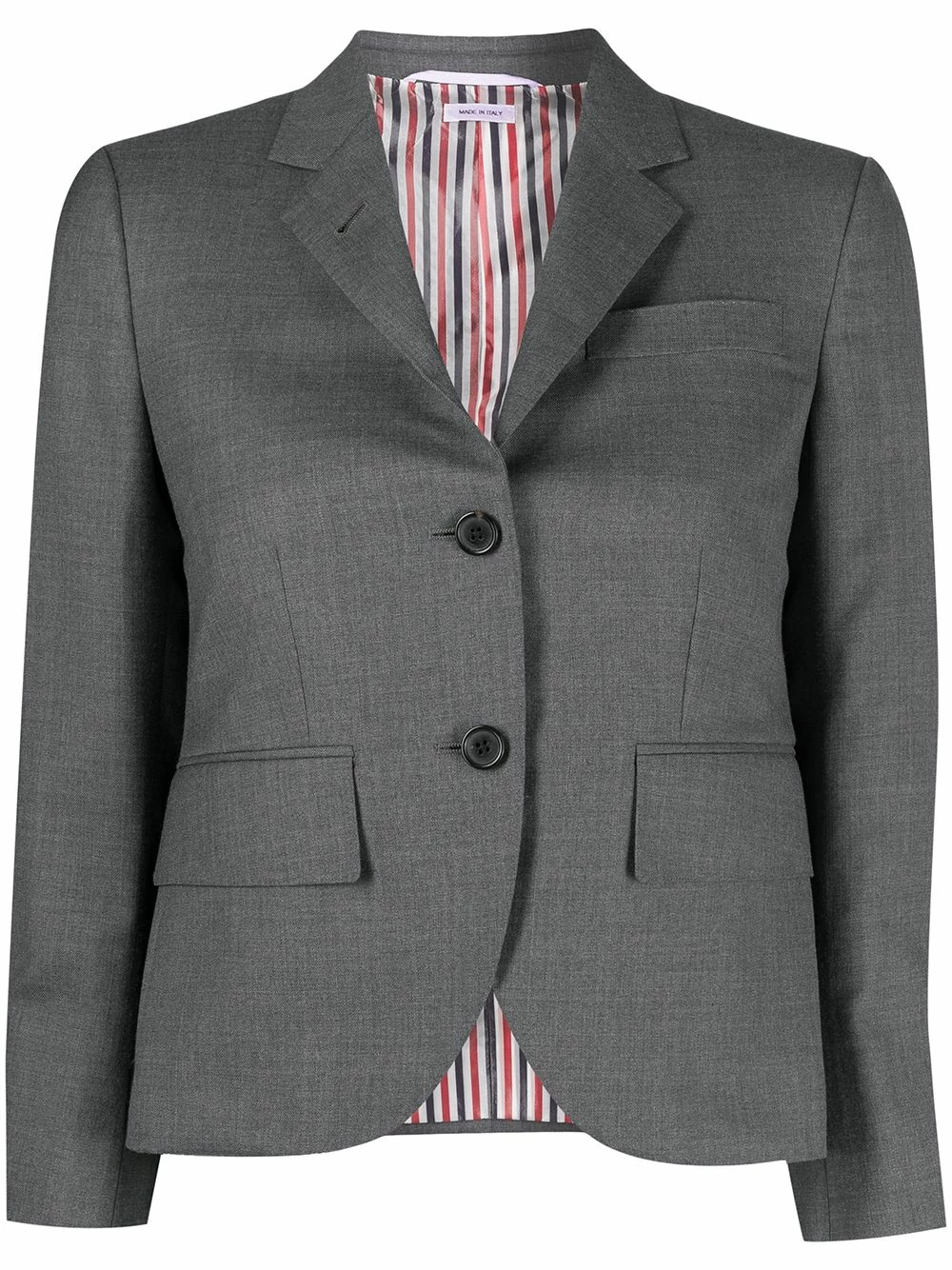 Button up. There’s no more grey days when you’re wearing this single-breasted Thom Browne blazer with notched lapels. You’ve taken your smarts to the next level with this choice.