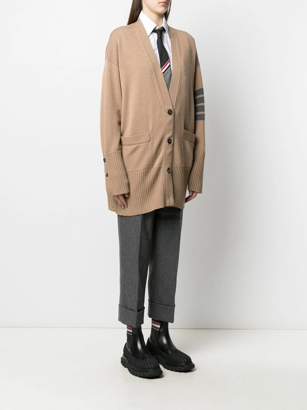 Who said comfort can’t be chic? Not Thom Browne that’s for sure by the looks of this merino wool oversized cardigan, perfectly designed to be thrown on over your off-duty looks. Point proven.