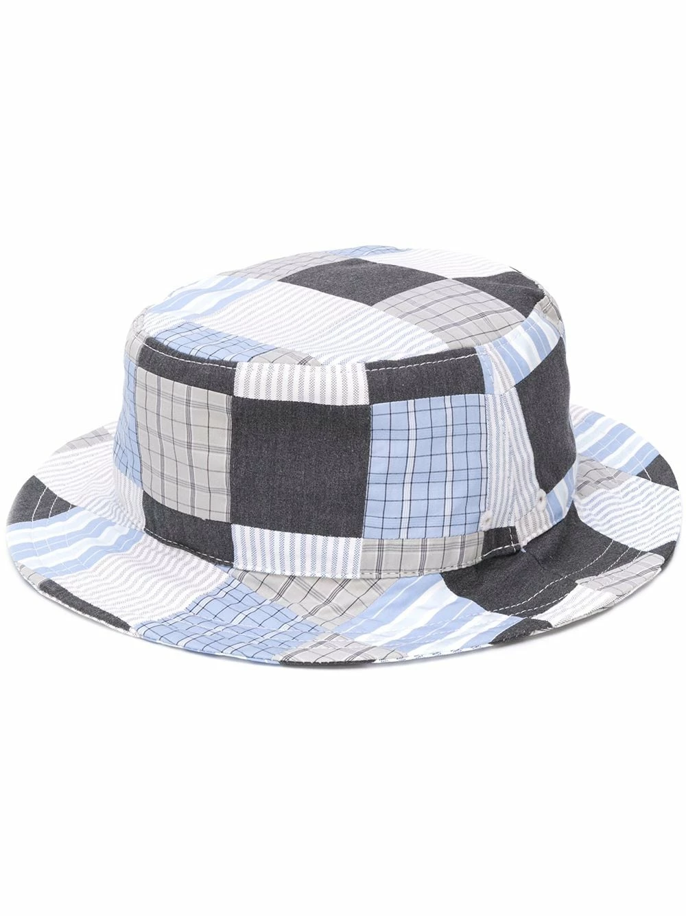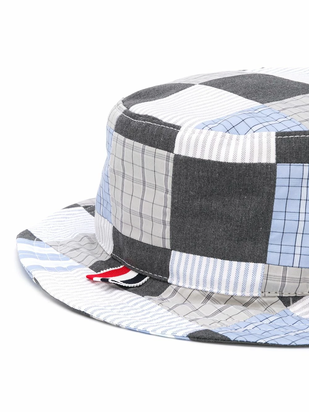 Here comes the sun. And luckily, here comes your new Thom Browne bucket hat. Shield your eyes in patchwork style.