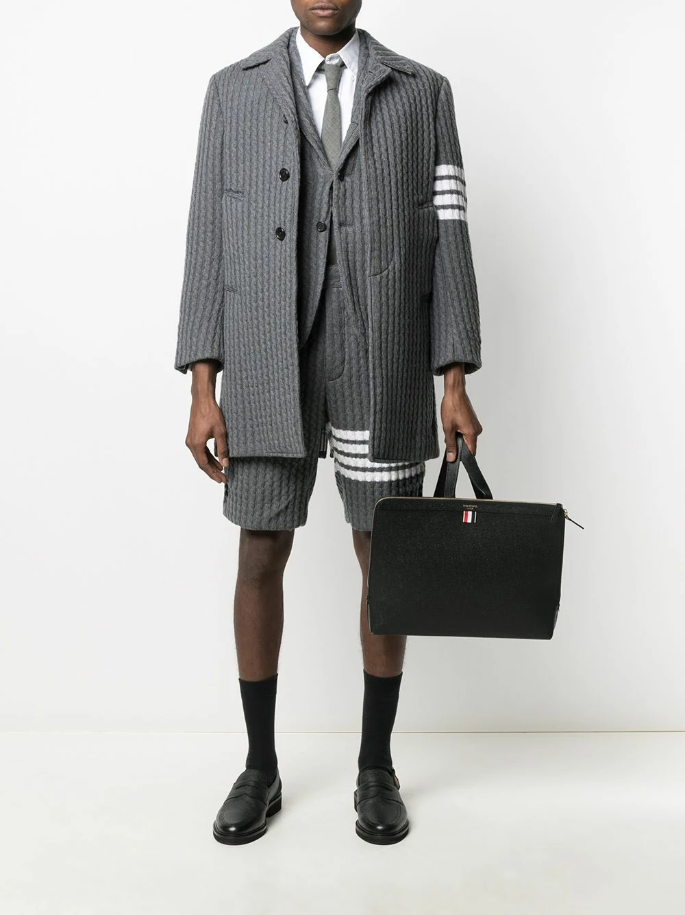 Do your office outfits need an extra something? Maybe this calf leather backpack from Thom Browne will do the trick. With a pebbled texture, this square-shaped bag perfectly mixes practically and sophistication. Smarten up.