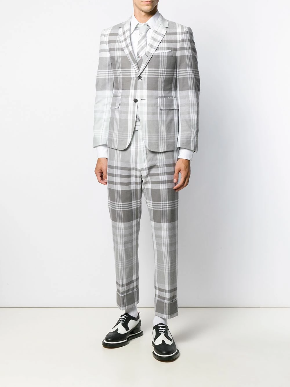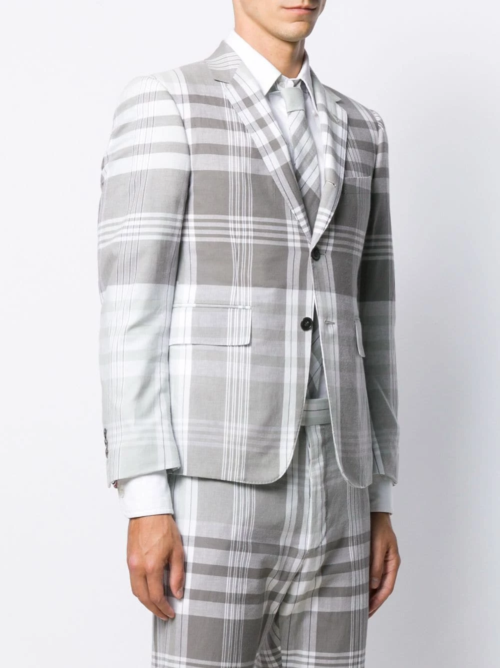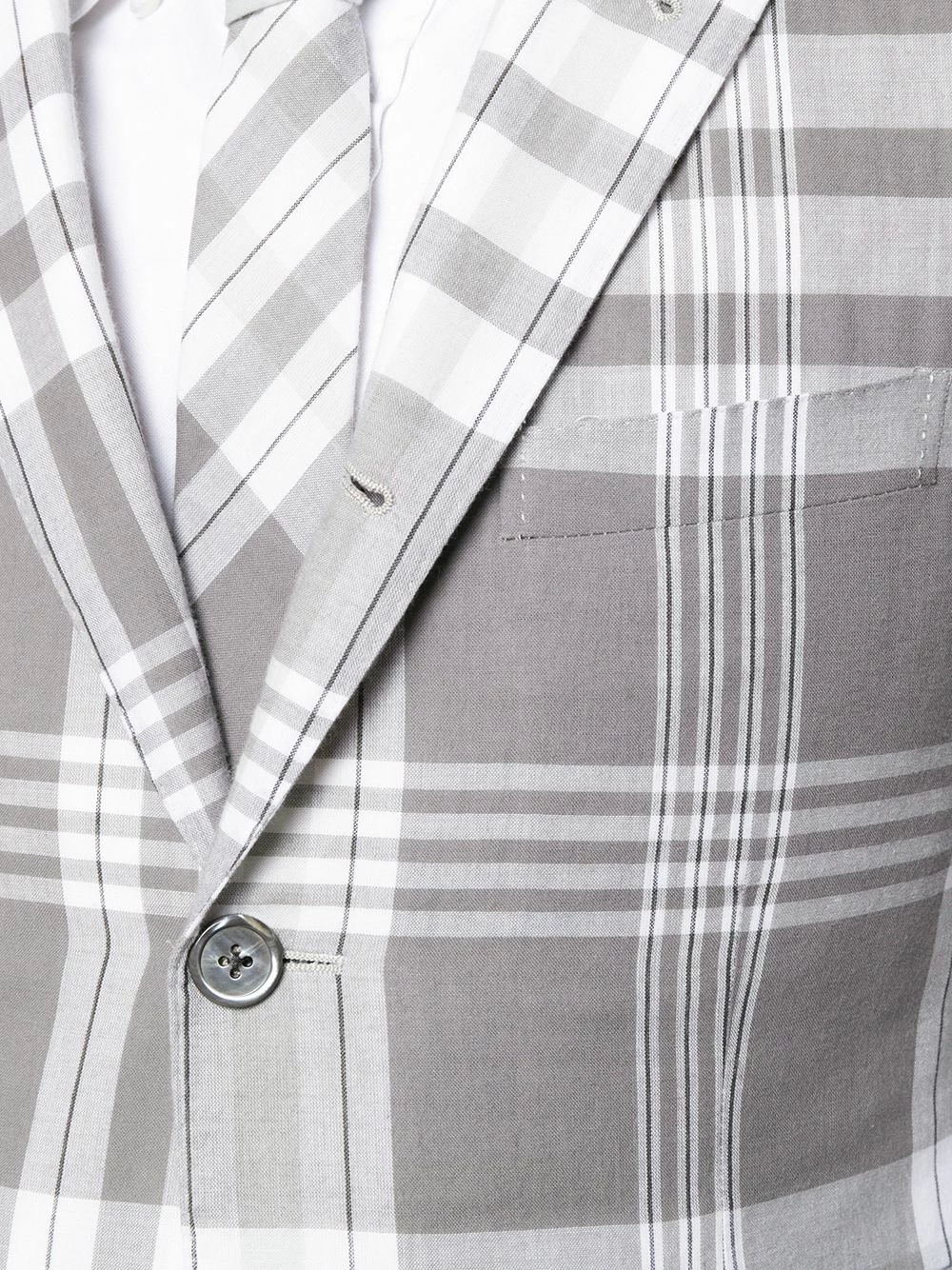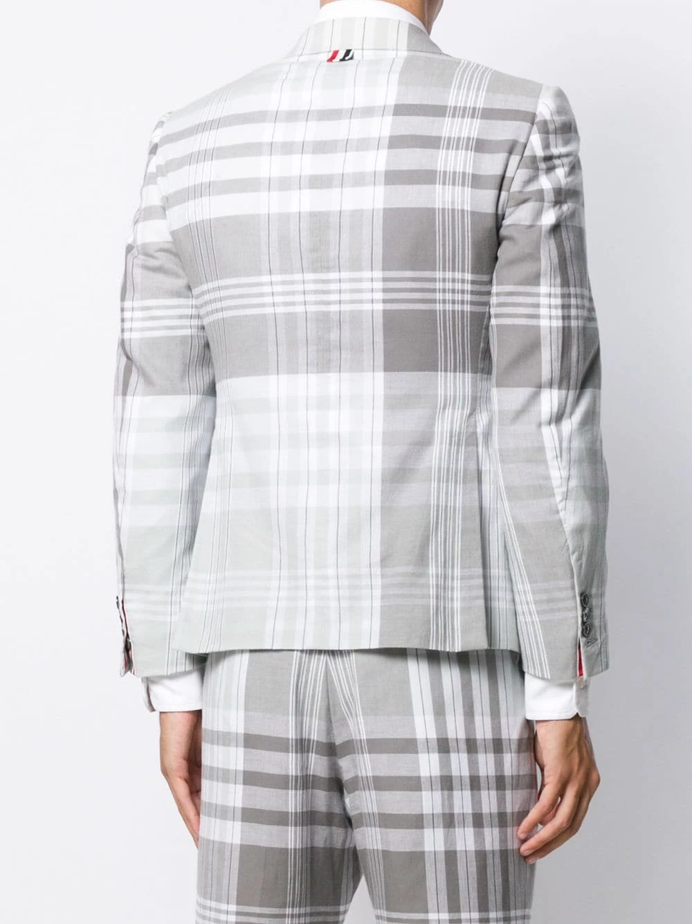 Looking for classic wardrobe pieces with a distinctive edge? Thom Browne will give you an easy route. This refined sport blazer has been crafted from structured cotton and detailed with a traditional Madras check. Featuring notched lapels, a check pattern, a button fastening, a chest pocket, two front pockets, button cuffs and a signature tri-colour tab to the rear.