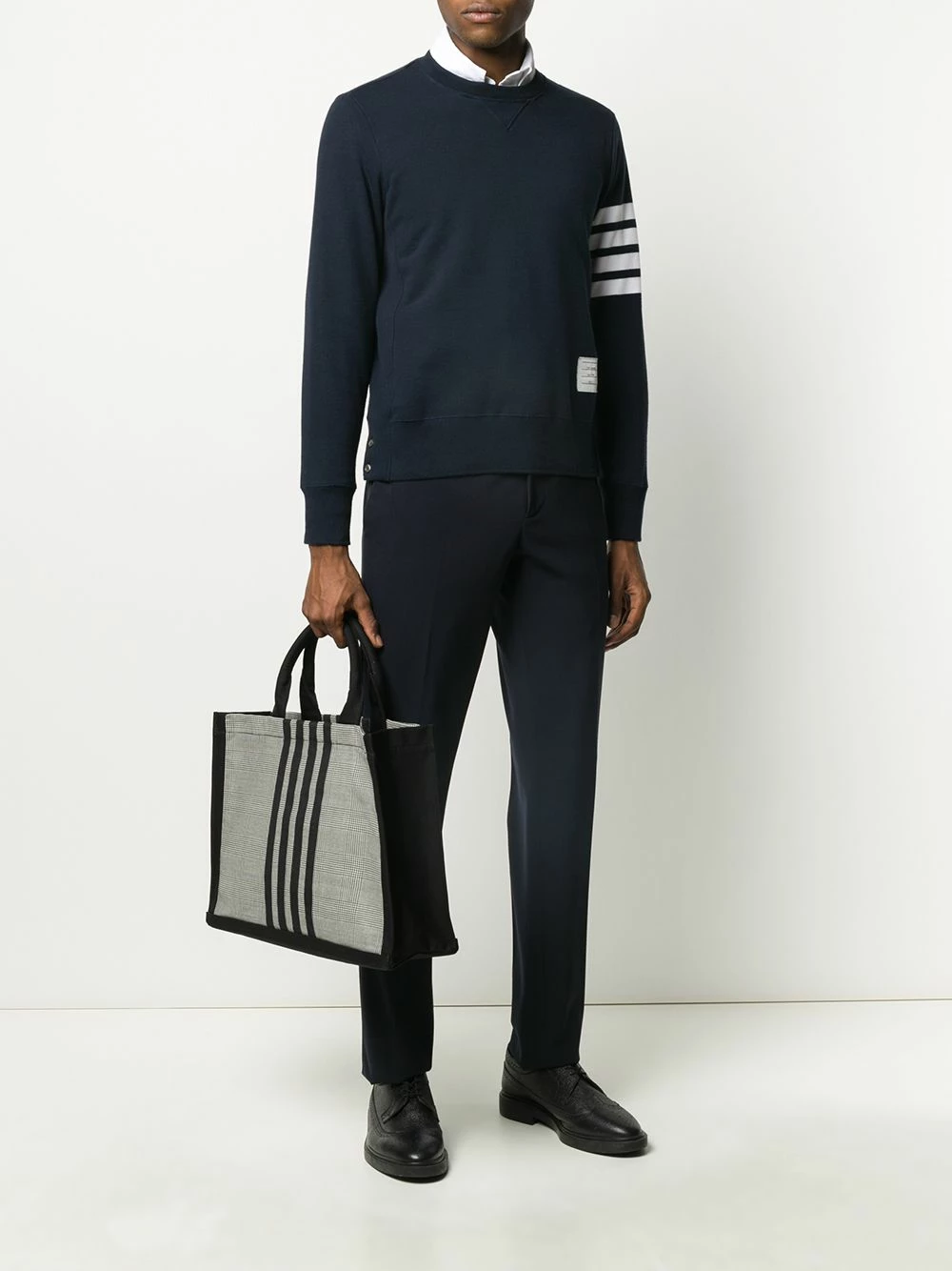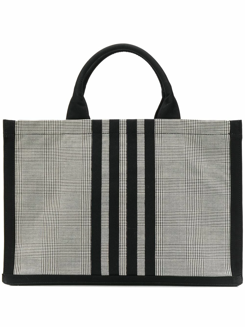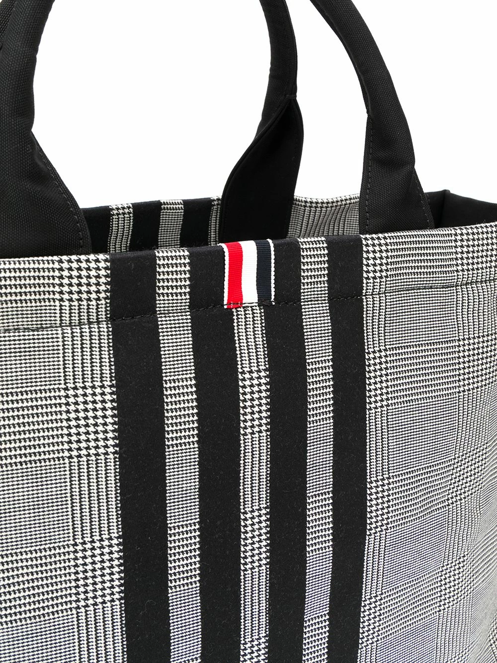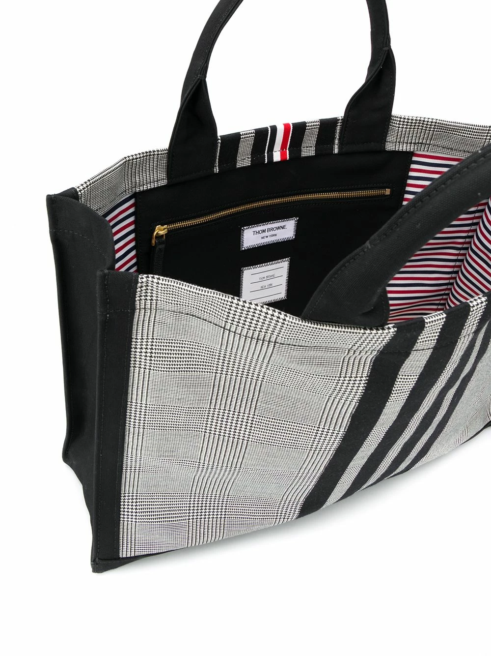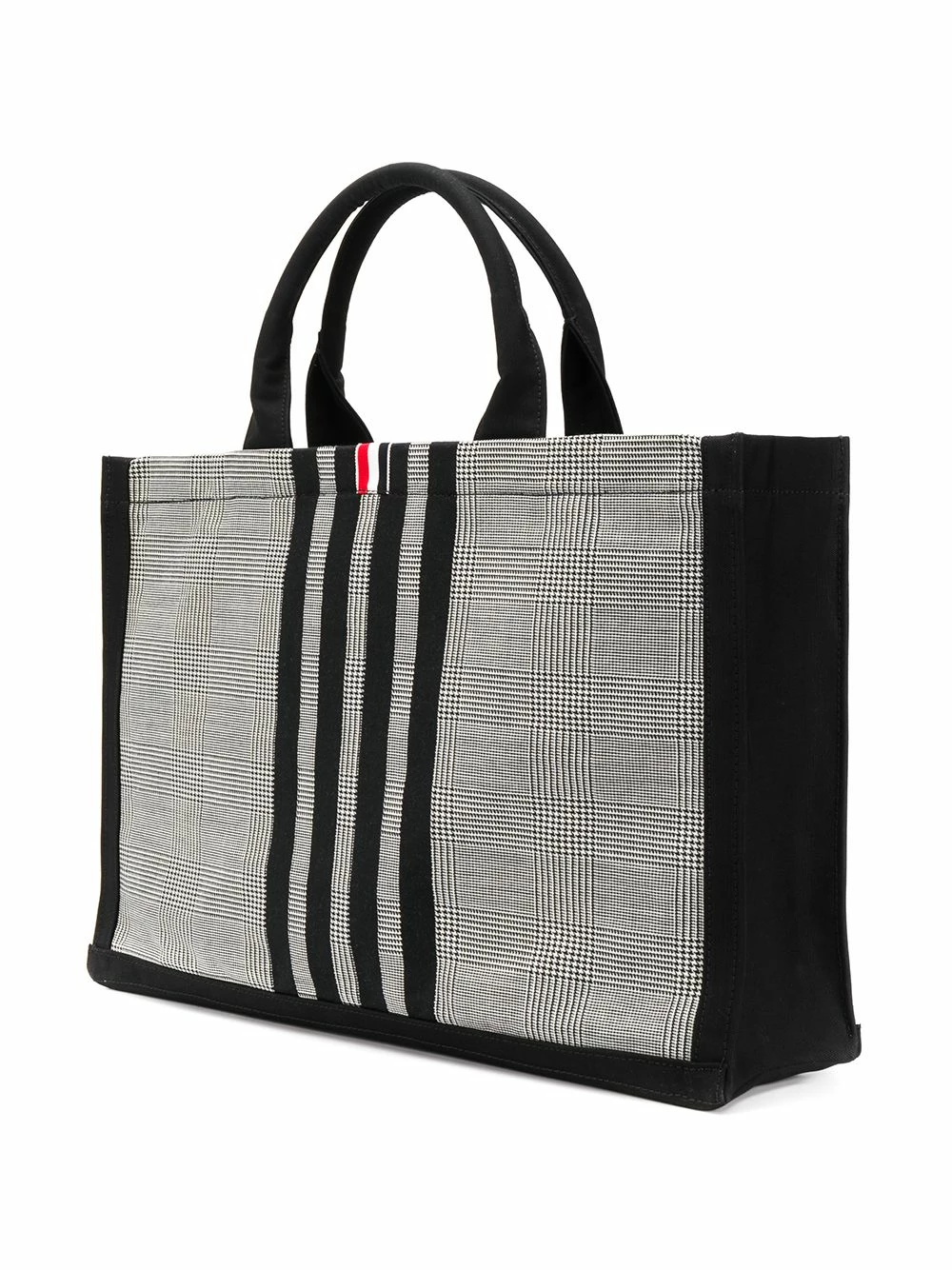 Hold it all, in style. Crafted from durable cotton-canvas that is decorated with a classic Prince of Wales check, this 4-Bar tote from Thom Browne exudes the sophistication and class that has become to be synonymous with the brand. Featuring round top handles, a check pattern, leather trimming, an open top design, an internal zipped pocket and a signature 4-Bar stripe motif.