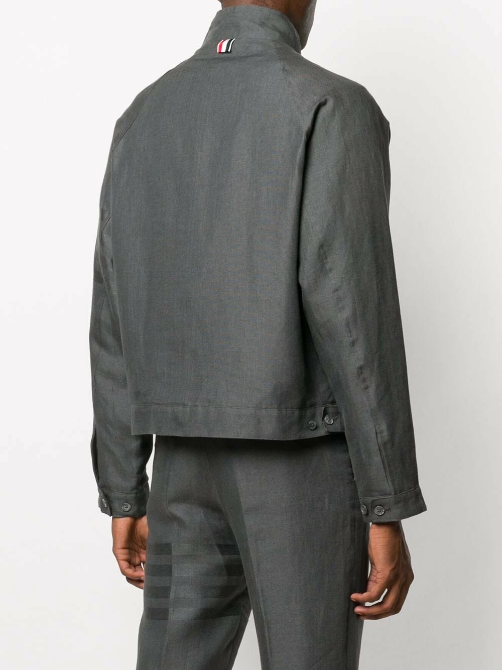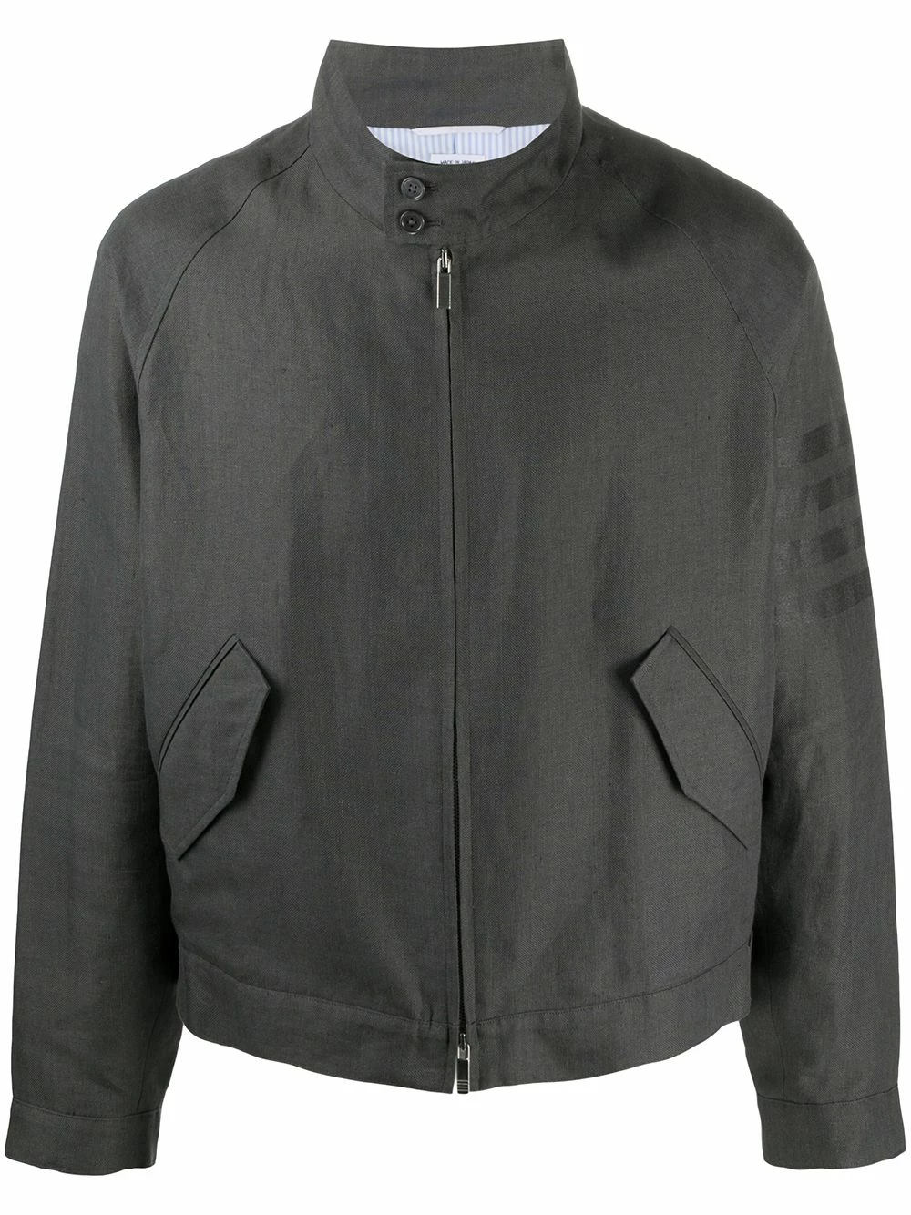 Lightweight and comfortable. This raglan zip-front jacket from Thom Browne is all it takes to make sure your outfit is sure to keep you warm, without sacrificing on style. The best of both worlds.