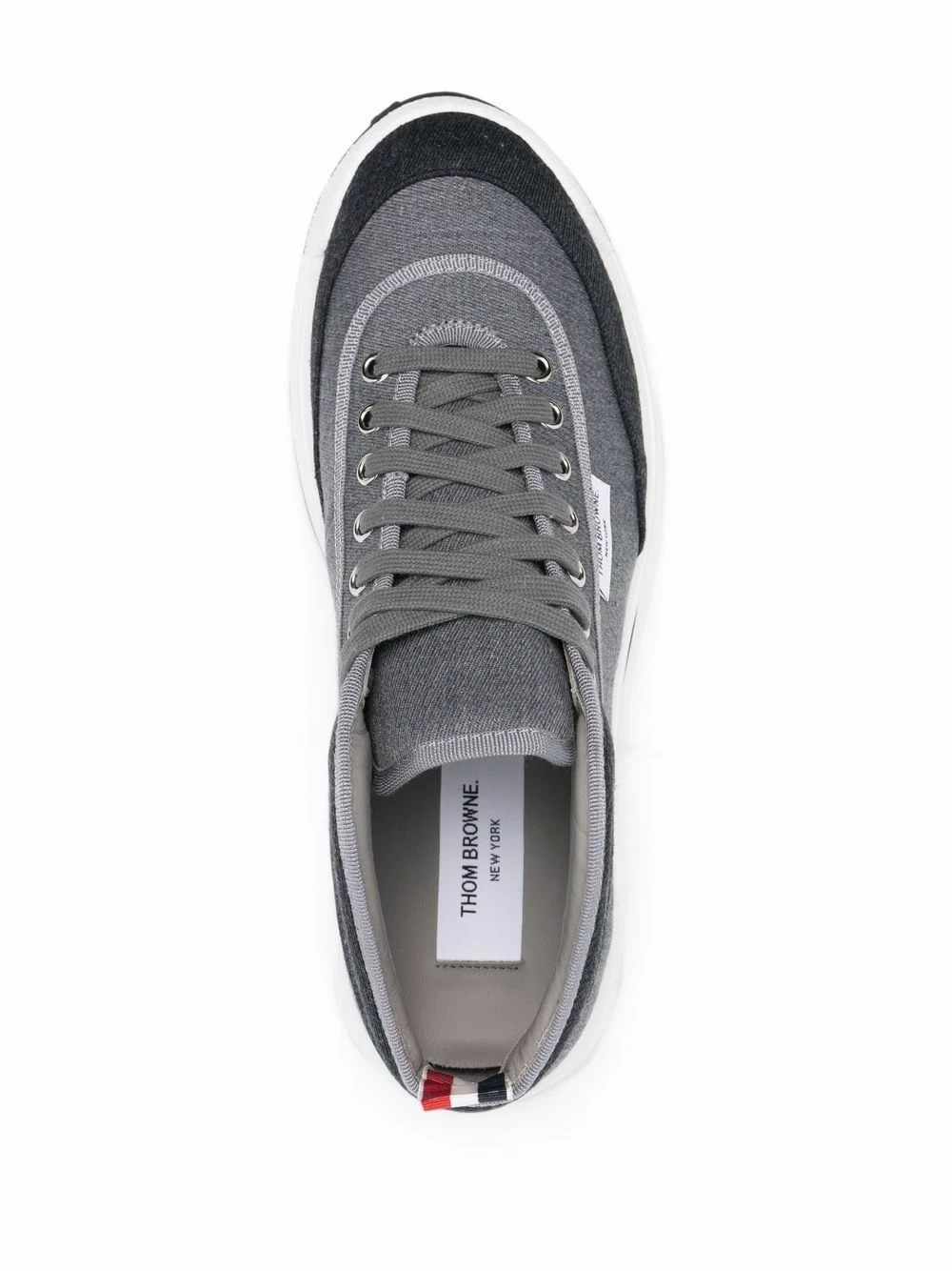 Detailed with the brand’s signature RWB logo stripe, this pair of high top Rugby sneakers is part of Thom Browne’s AW21 collection. Showcasing the label’s expert Italian construction, they feature a round toe and logo tab detail to one side.