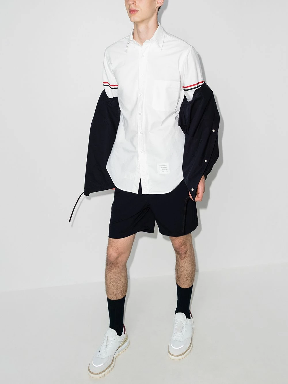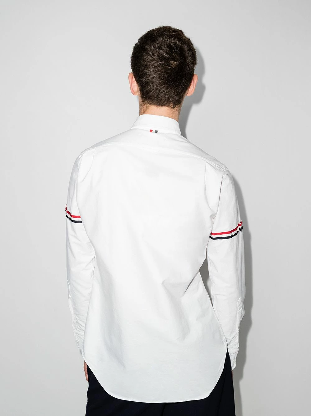 Thom Browne’s preppy American aesthetic informs this white shirt, accented with the brand’s signature RWB-stripe at both sleeves. Crafted in the USA from cotton oxford, it’s cut to a slim fit and finished with another brand code: the grosgrain loop tab.
