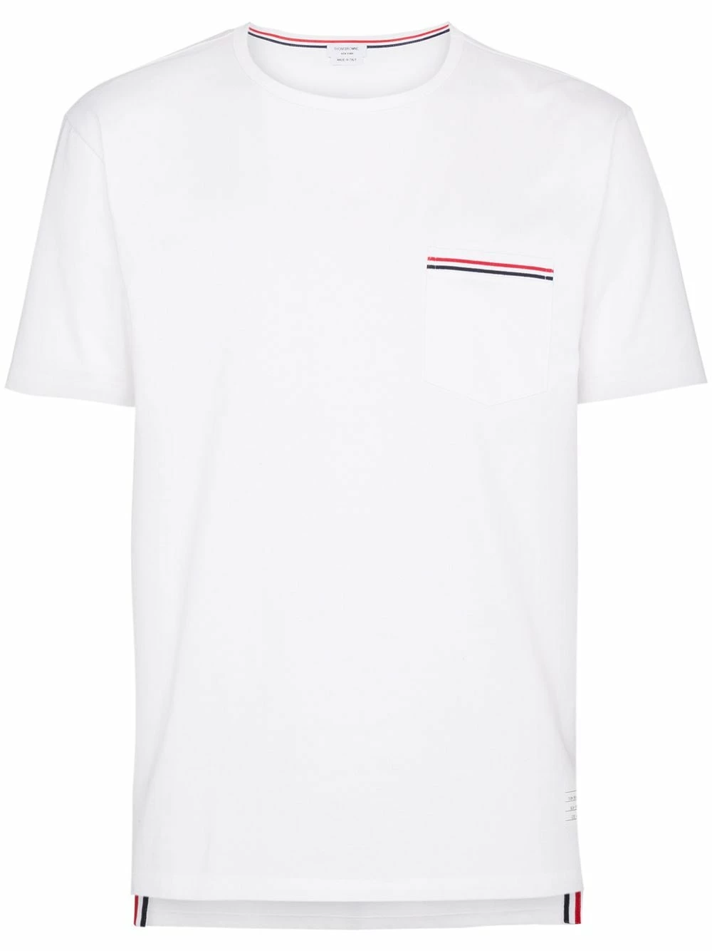 White cotton Rwb Pocket Trim Short-Sleeve Tee from Thom Browne.