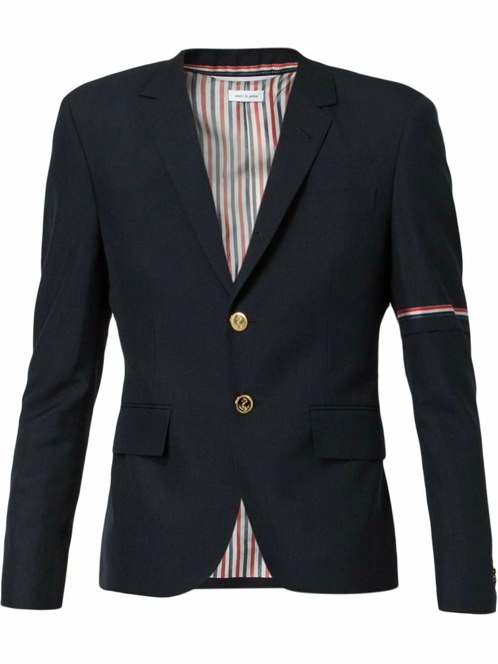 Navy wool blend Rwb Selvedge Armband Sport Coat from Thom Browne.