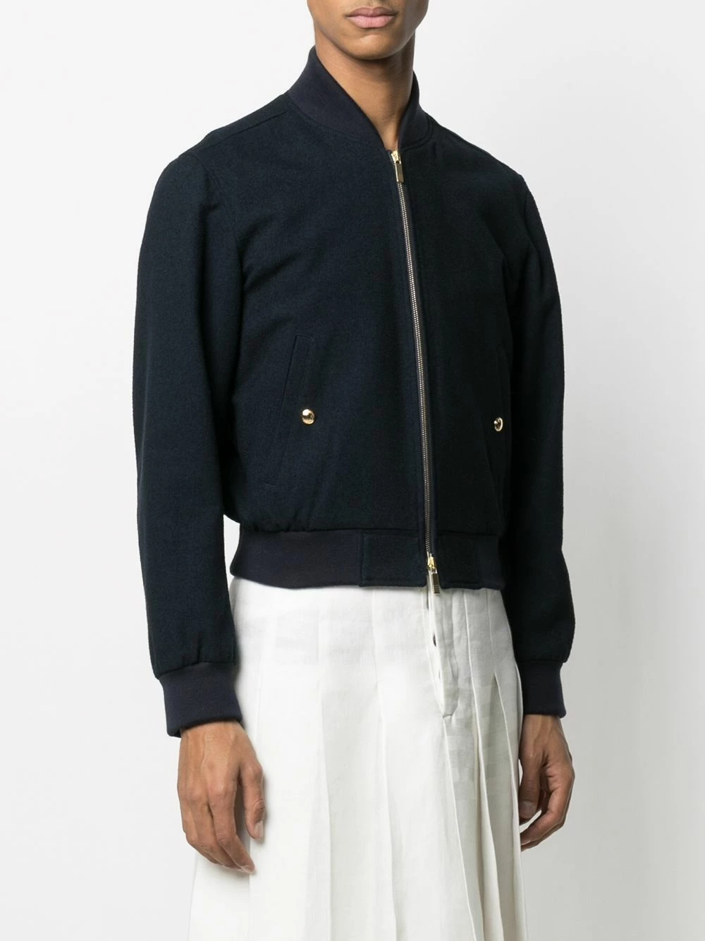 If there’s a piece that everyone should own, that piece is a bomber jacket. Go for a timeless version like this RWB stripe bomber jacket from Thom Browne. Timeless is key.
