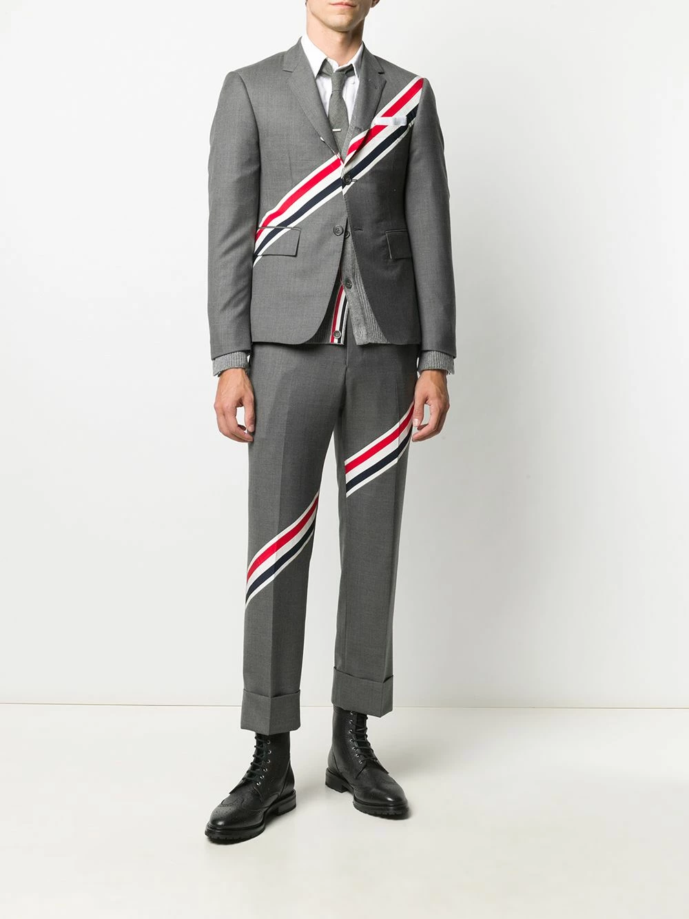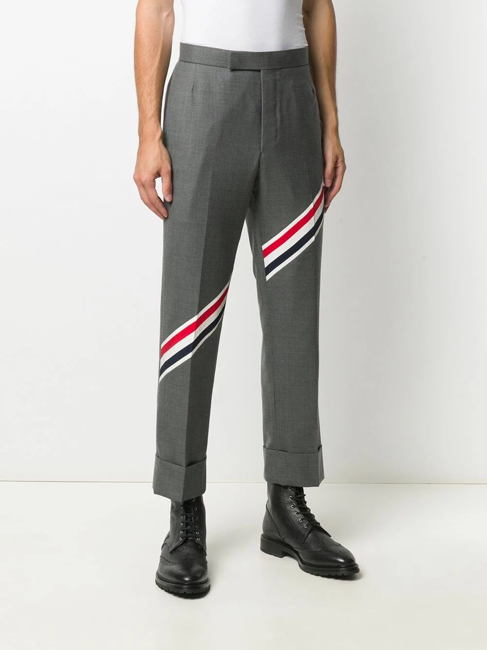 A cropped length and RWB stripe? It has to be Thom Browne. Explore your sophisticated side in these tailored trousers.