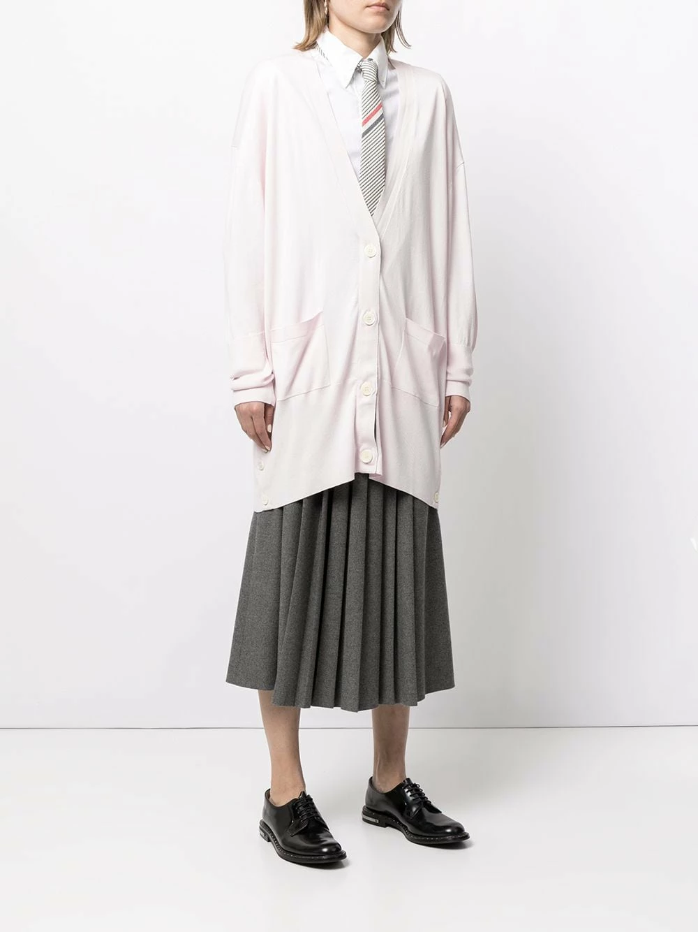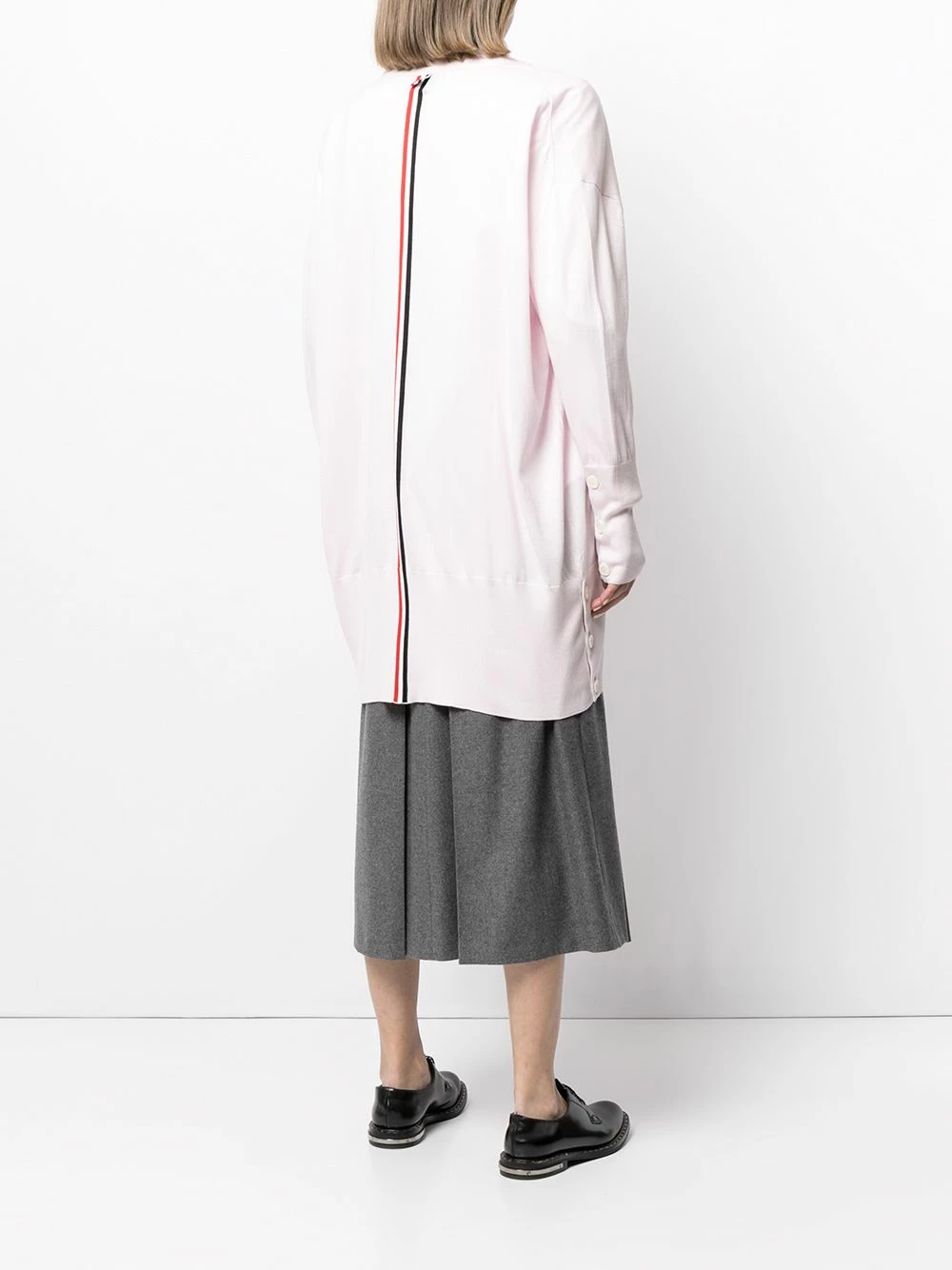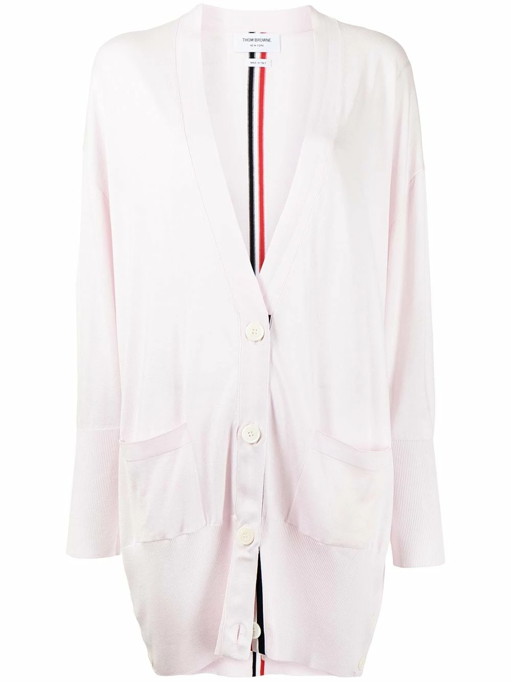 Wear your knits in true Thom Browne fashion. Crafted from a blend of cotton and silk, this long cardigan boasts the instantly-recognisable RWB stripe to the rear. Show off your great taste.