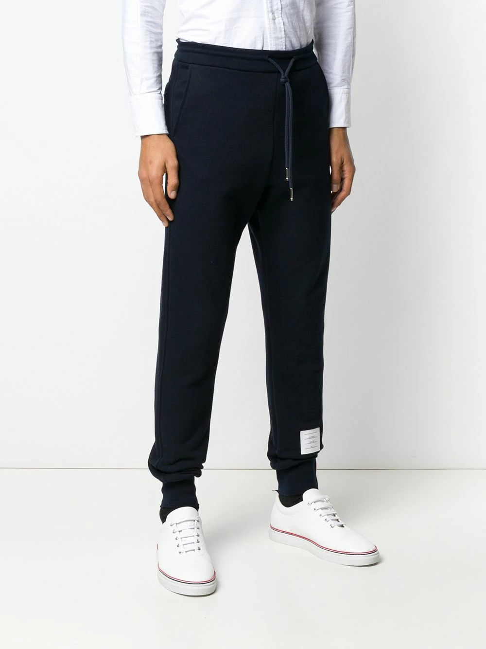 Switch up your casual look with these side-stripe cotton track pants from Thom Browne. Designed with a drawstring waist and the signature tricolour side stripes, these easy-going pair are sure to take your laid-back look up a notch or two.