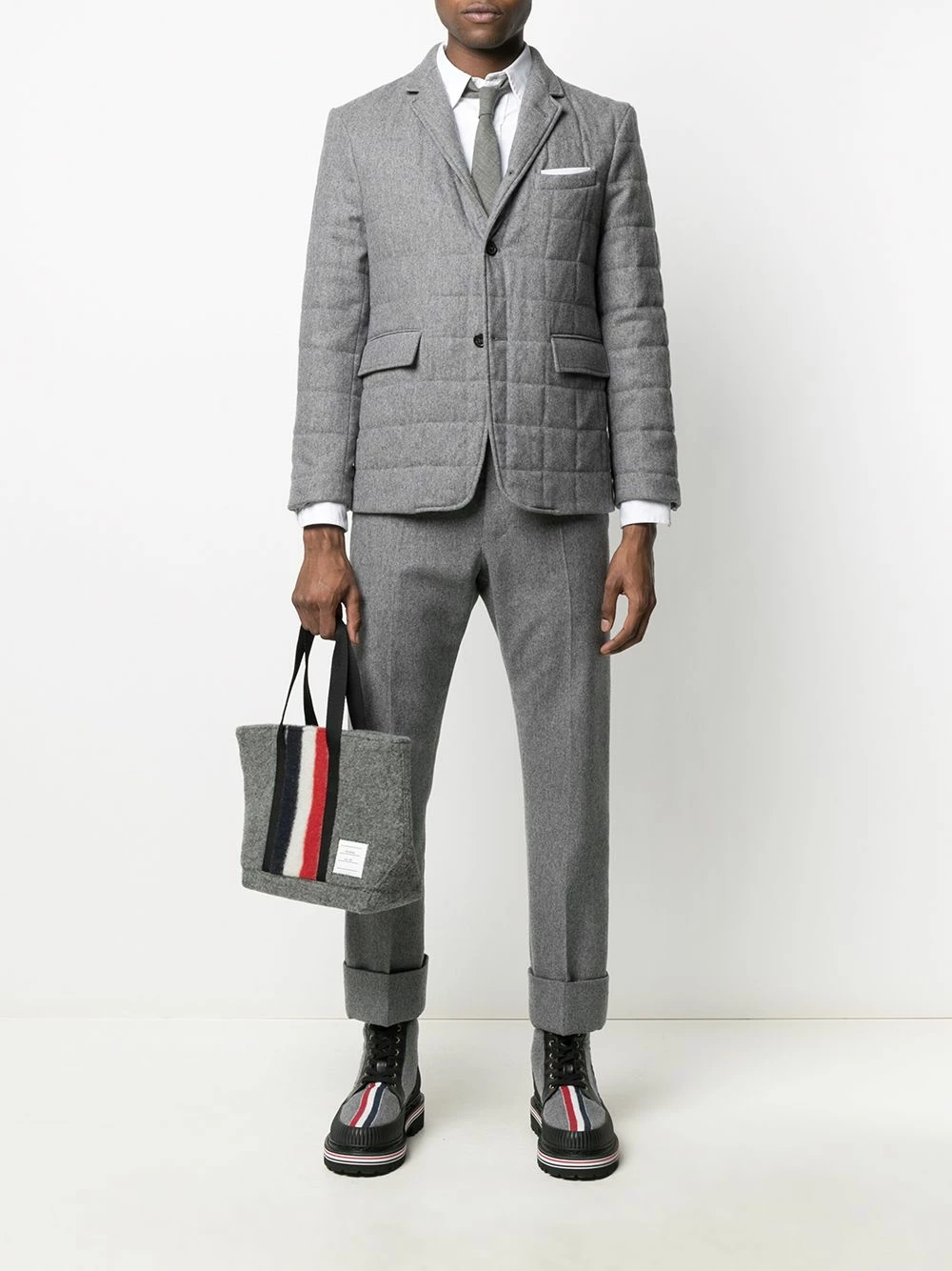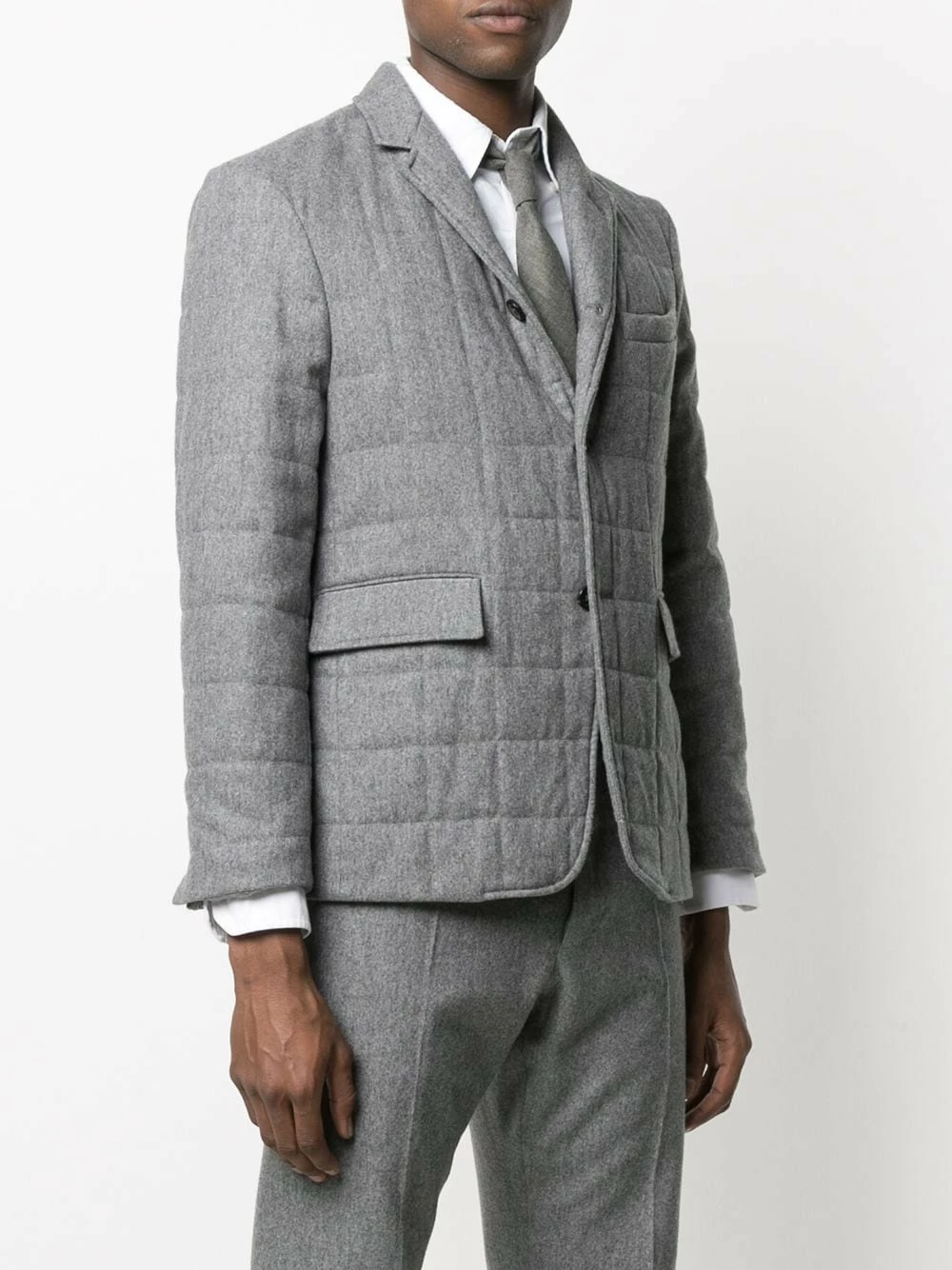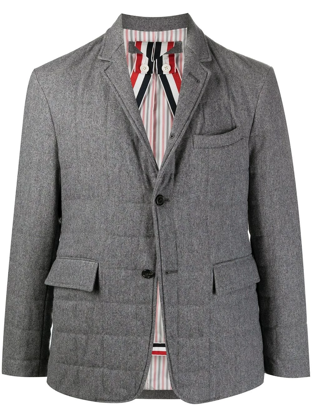 Cold mornings? Well, good news, this cosy padded suit-style jacket by Thom Browne goes perfectly with your takeaway coffee cup, just throw on and head out. Bad news, you might not want to take it off.