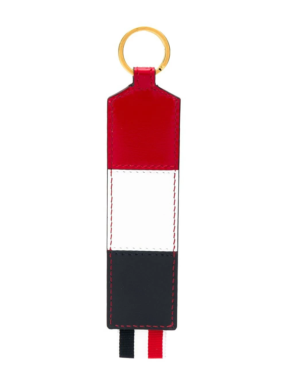 Undoubtedly, Browne is influenced by deep tailoring roots and a passion for sports. Classic and elegant, even his accessories have a unique style that only Thom Browne can offer as seen in this RWB stripe pebbled leather key holder. Featuring a Rwb stripe detail and a metal ring.