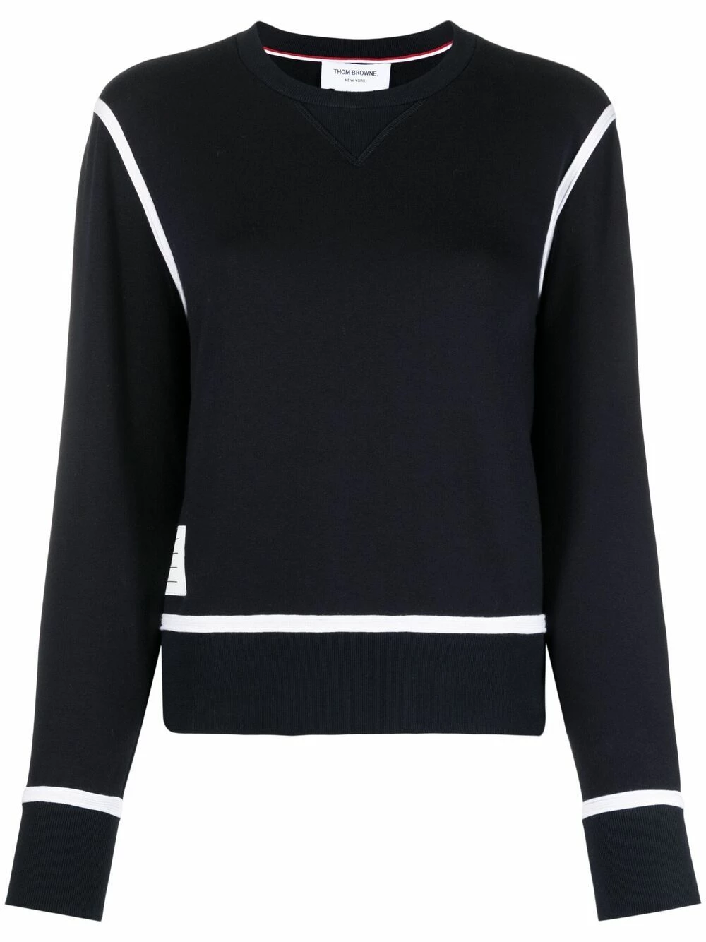 Keep things simple…but never boring. Thom Browne’s signature RWB stripe detailing steals the show on this sweatshirt. Make it your new uniform.