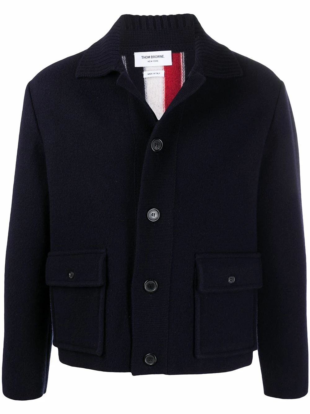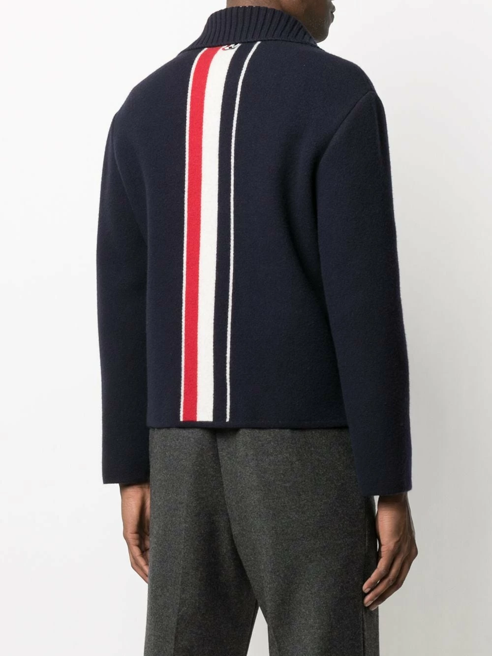 When in doubt, wear stripes. And when the weather’s cold, wear this RWB stripe shirt jacket. Crafted from merino, this Thom Browne piece boasts the brand’s iconic stripes to the rear. Elegantly warm.