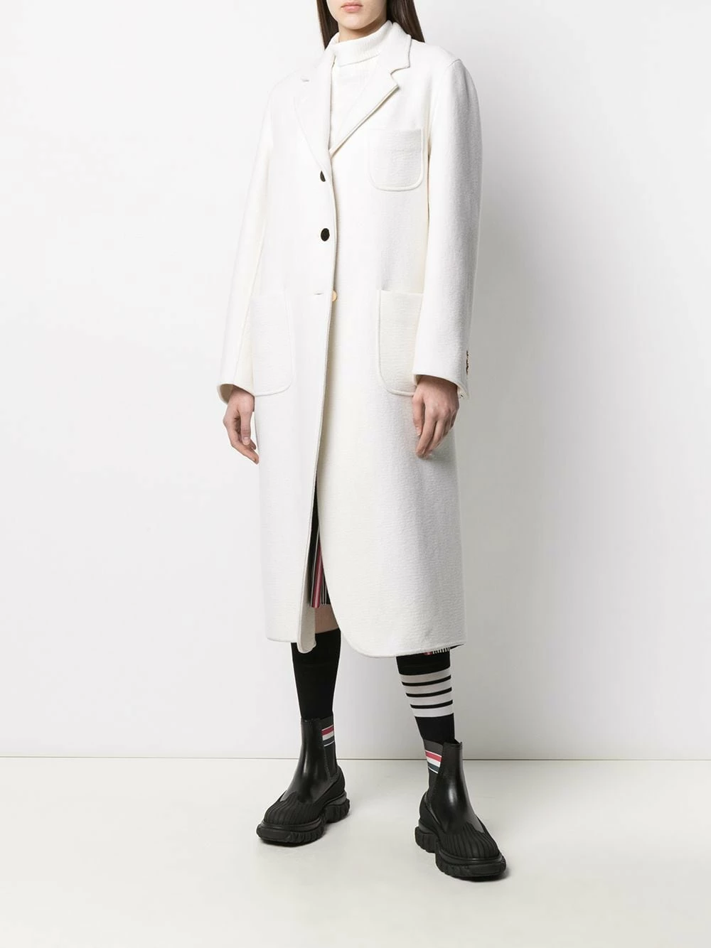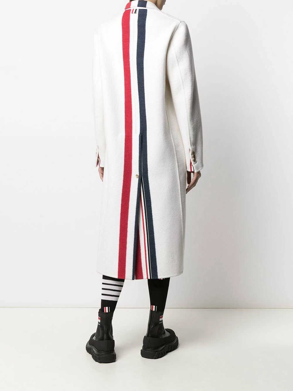 A tailored coat with a signature Thom Browne twist. With a RWB stripe running down the back, this tailored piece is here to stand out and blend in all at once. What more could you want?