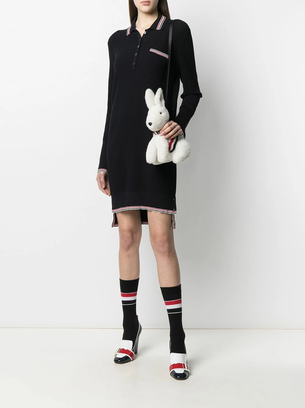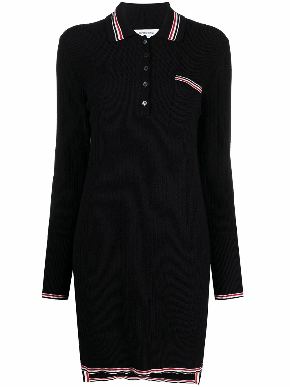 Take your street style up a gear with this RWB stripe textured stitch polo dress from Thom Browne. Crafted from overtwisted cotton, the long sleeve silhouette boasts a signature tri-colour striped trim and rear loop tab. You’ll wish you could wear it every day.