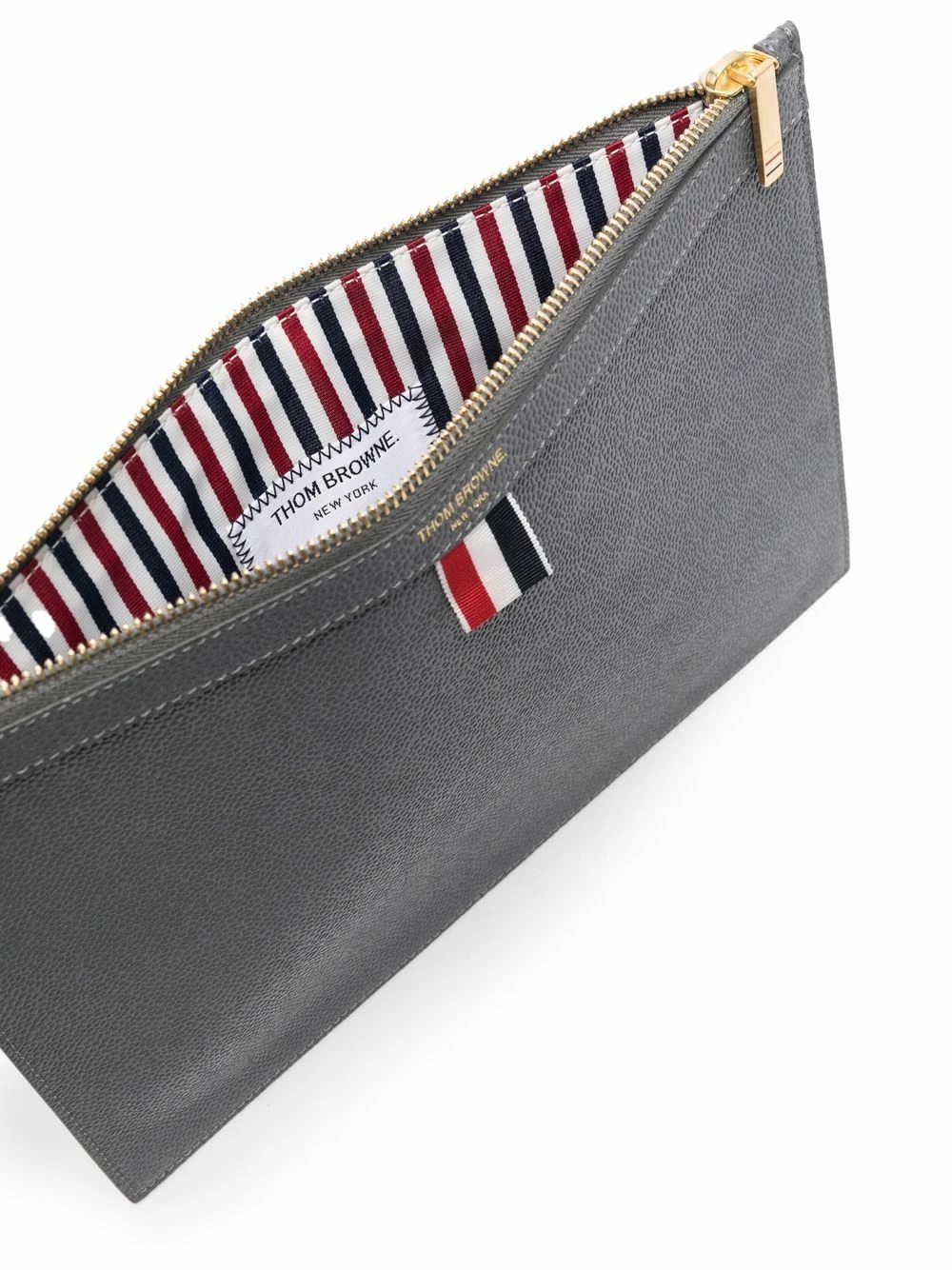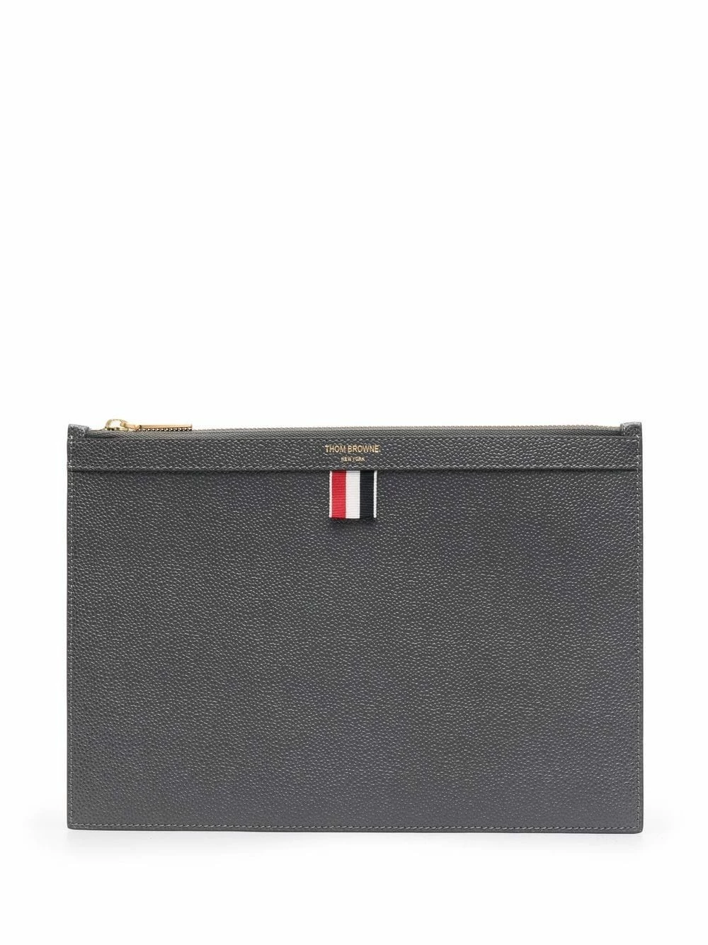Thom Browne’s iconic RWB stripe tab is seen season after season, and the label’s accessory collection is no exception. The unmistakable theme is seen here against a leather construction, adding a branded finish to its grey-tone design.
