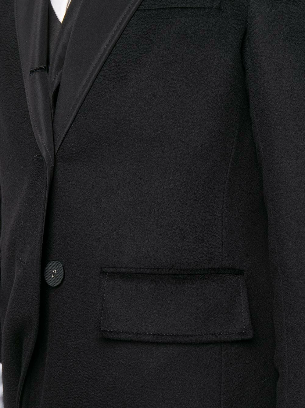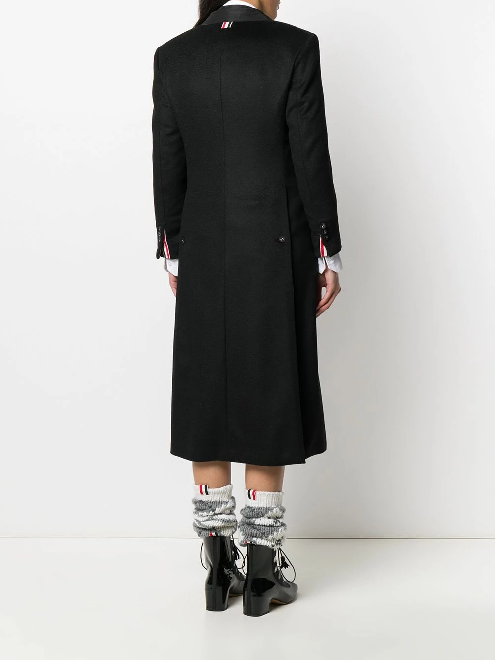 Everybody needs that one item in their wardrobe, that they love more than anything else. For you, that item is this single-breasted overcoat from Thom Browne. The romance starts today! Featuring a collar style, a front button fastening, front pockets, long sleeves, a mid-length, wide lapels, a RWB tab, RWB details and back slits at the hem.