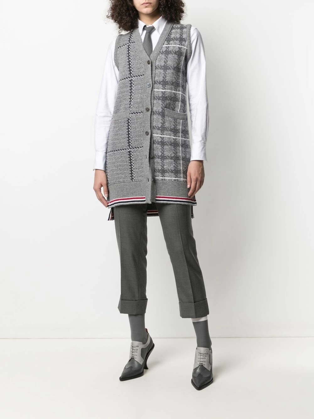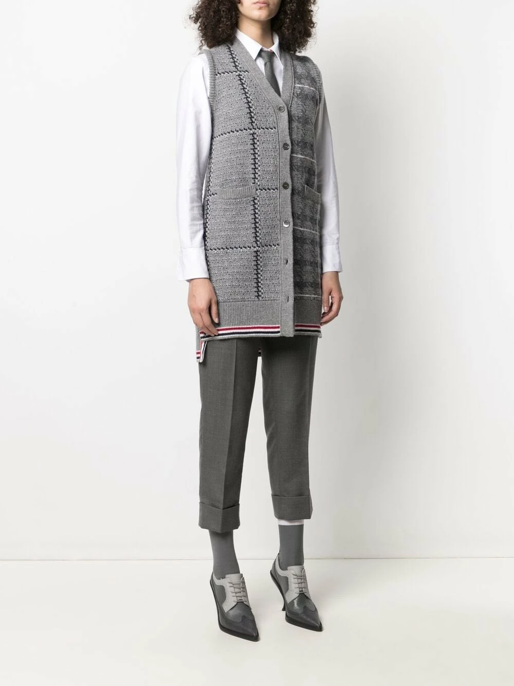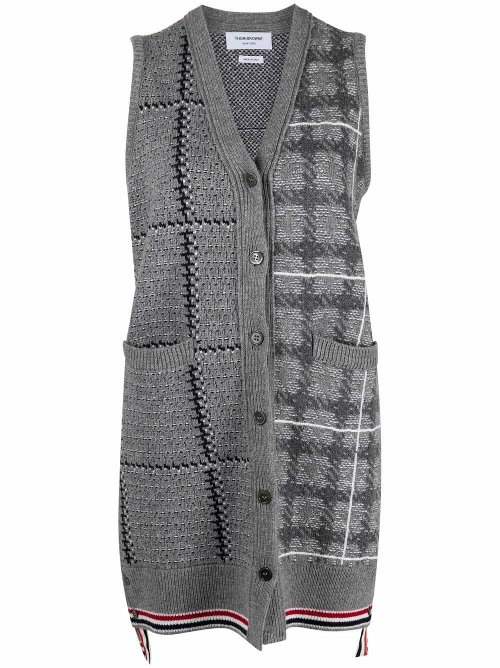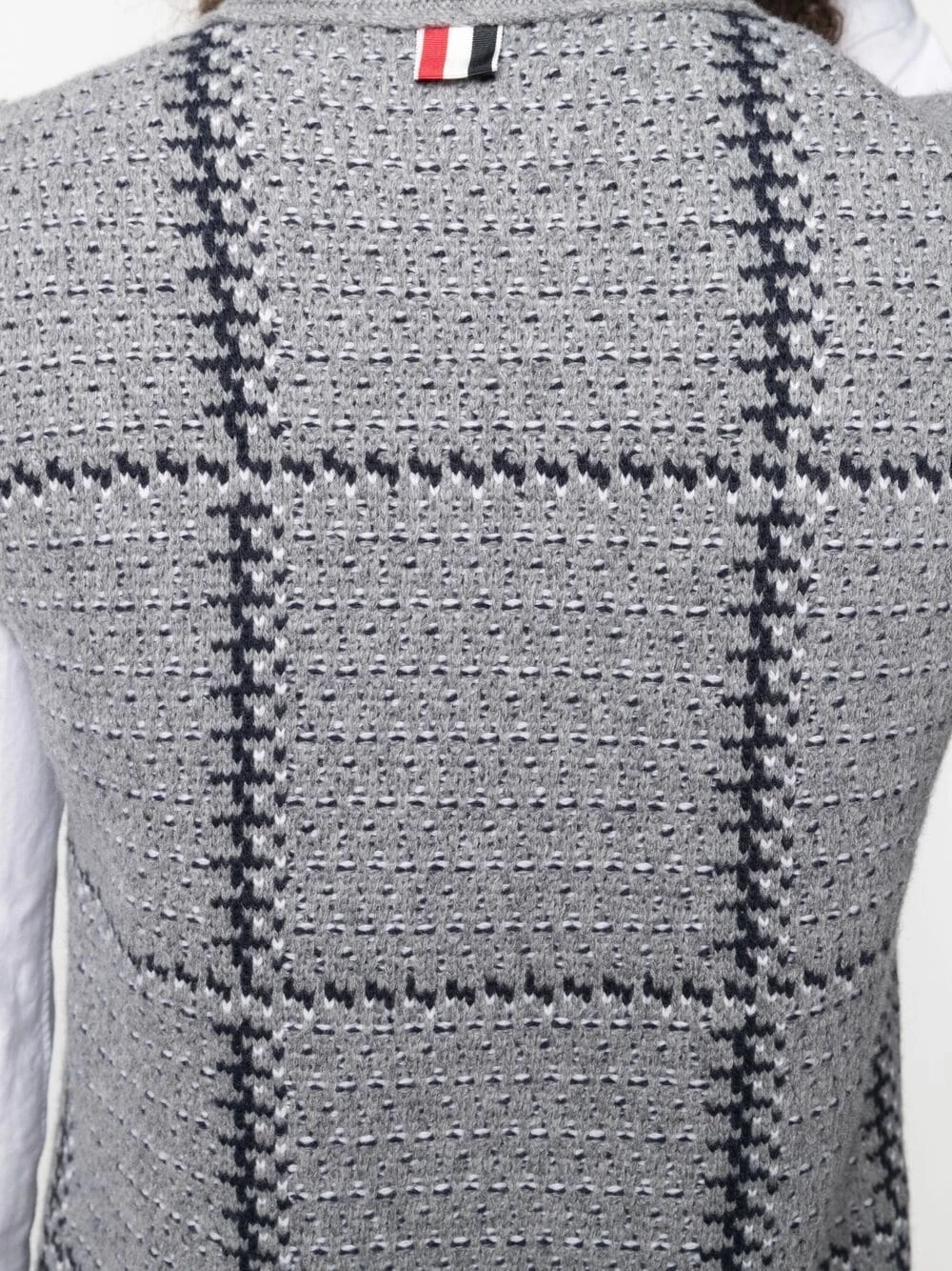 There’s a reason why you turn to Thom Browne every time. Embrace a tonal design in this grey checked cardi-coat. Staying warm never looked so good.