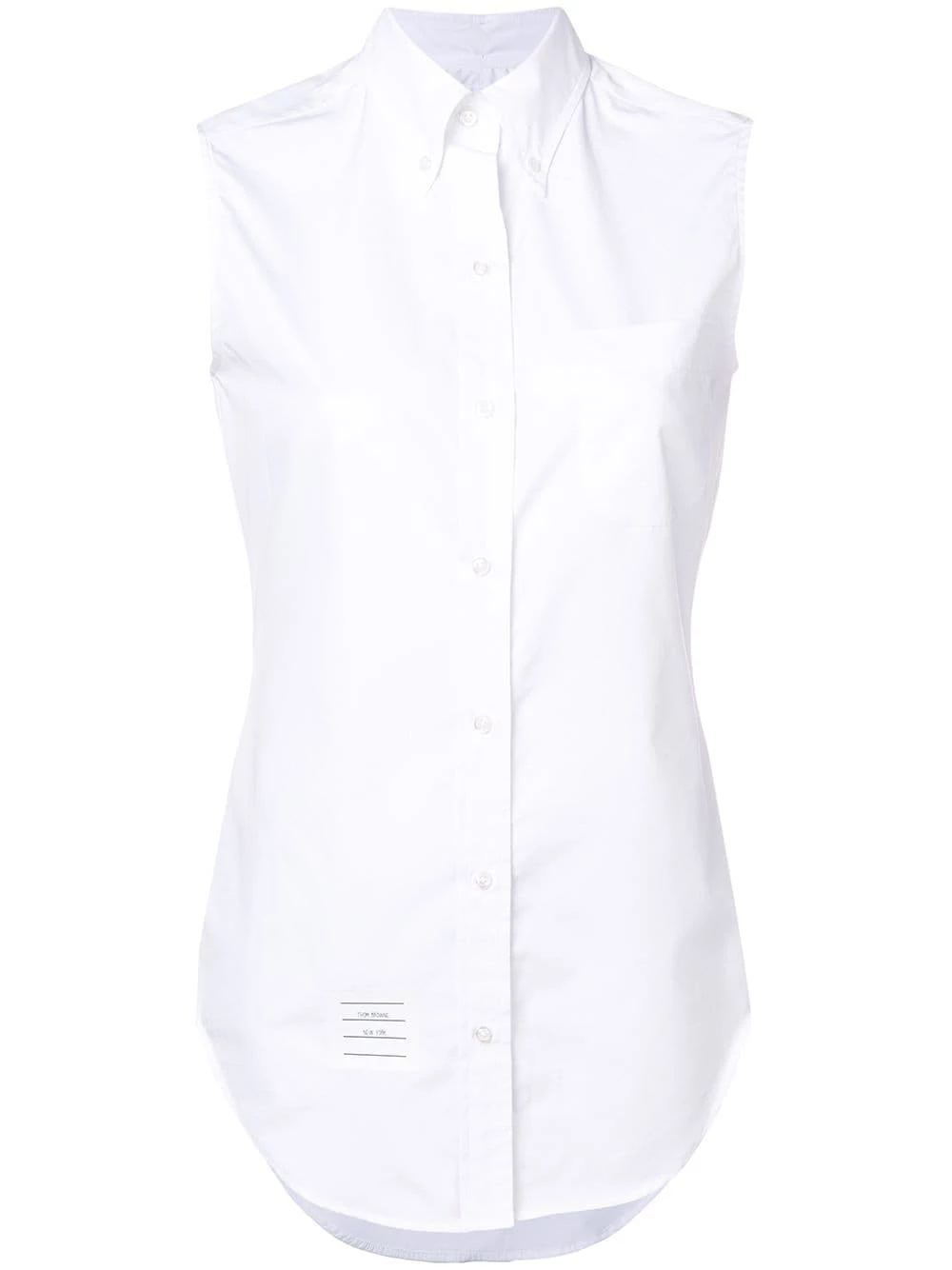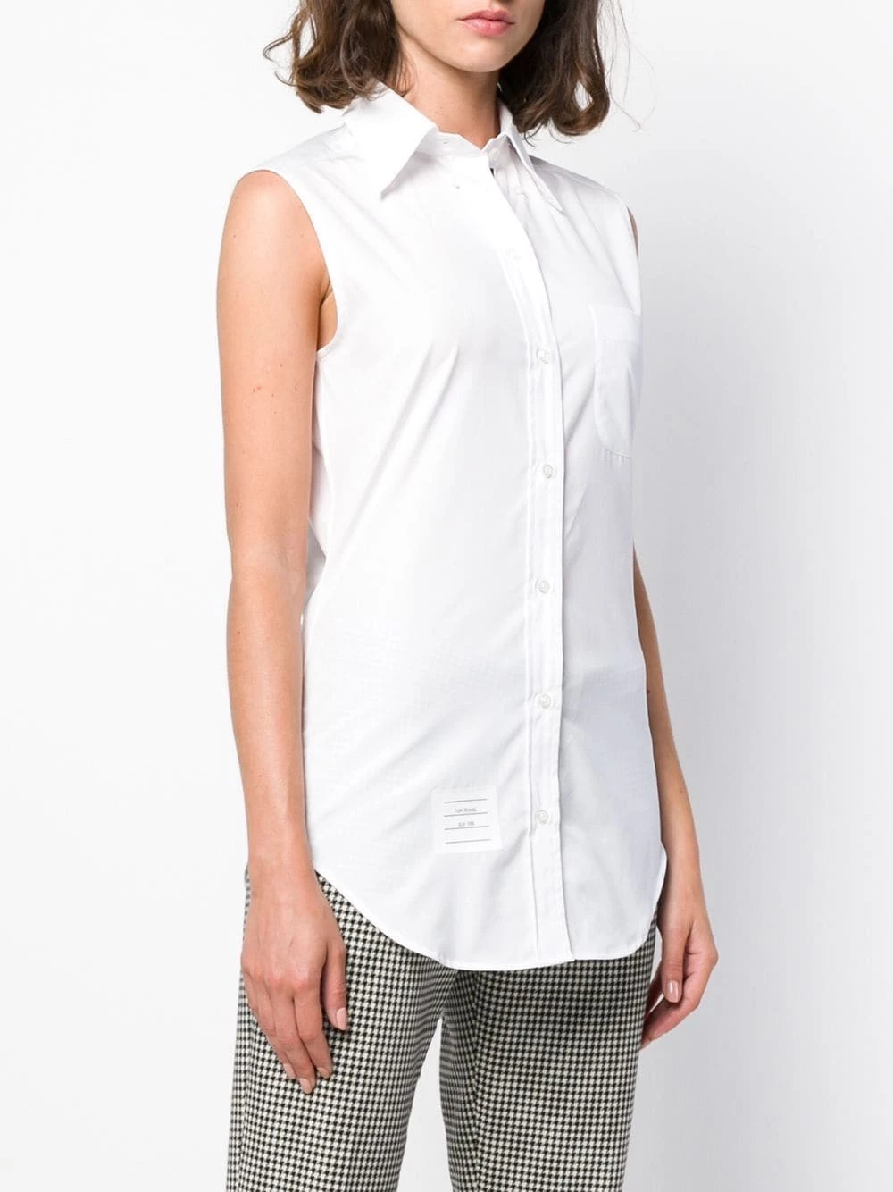 100 WHITE Sleeveless Grosgrain Poplin Shirt from Thom Browne.
