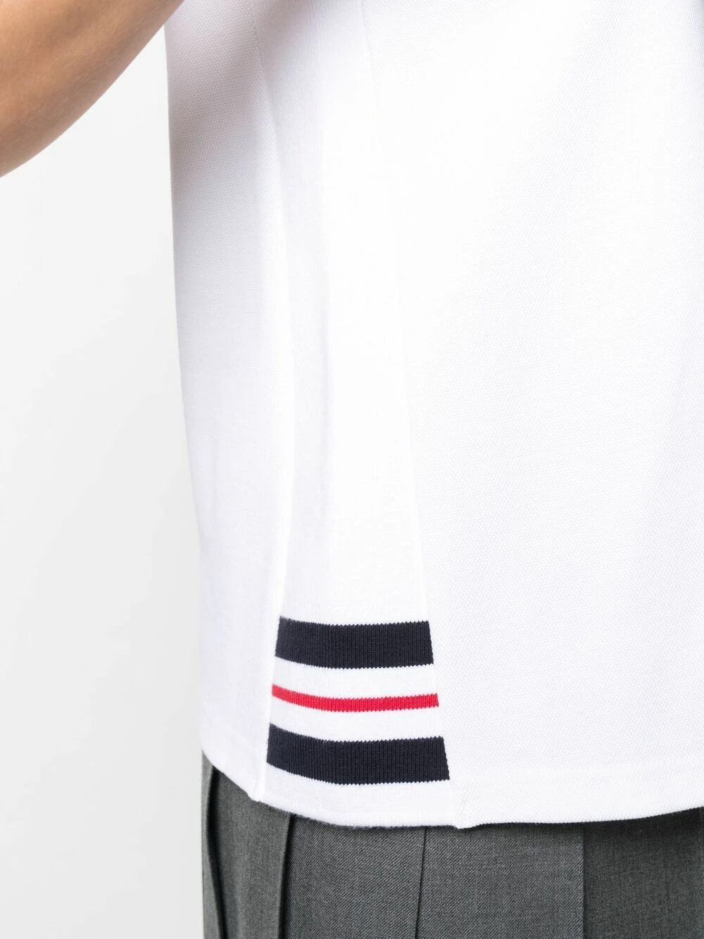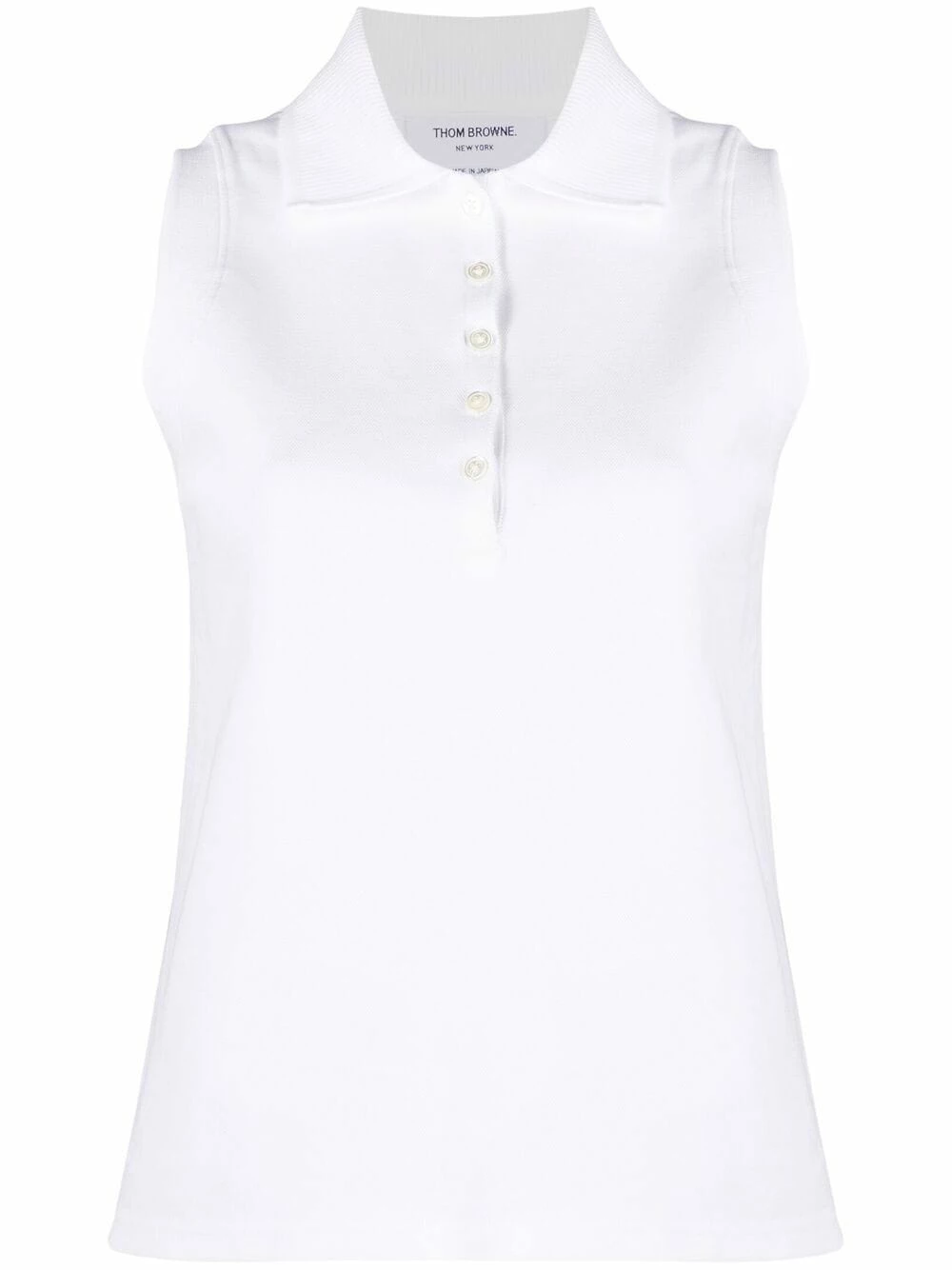 Show off your sporty side. Thom Browne’s sleeveless polo shirt has you covered. You’ve earnt your style stripes with this design.