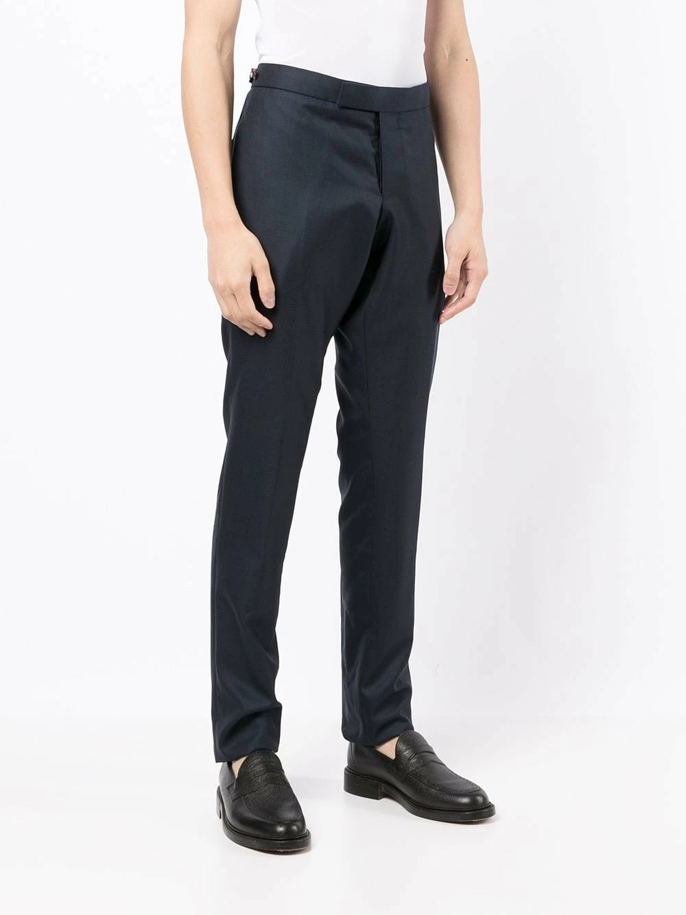Thom Browne showcases their expertise in tailoring with these trousers. Crafted from wool, they boast a classic slim-cut design and a refined navy-blue colourway.