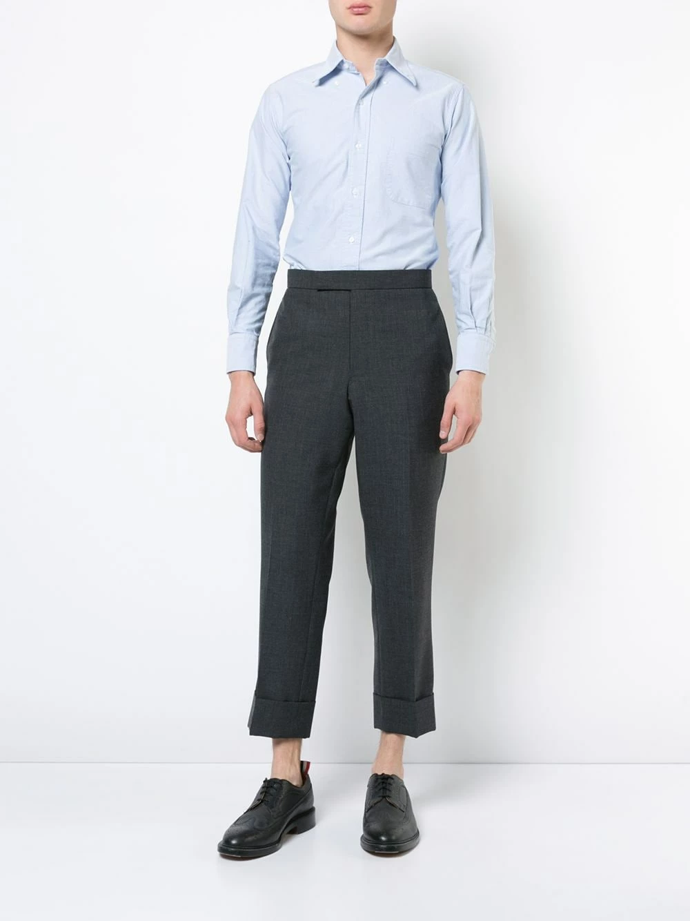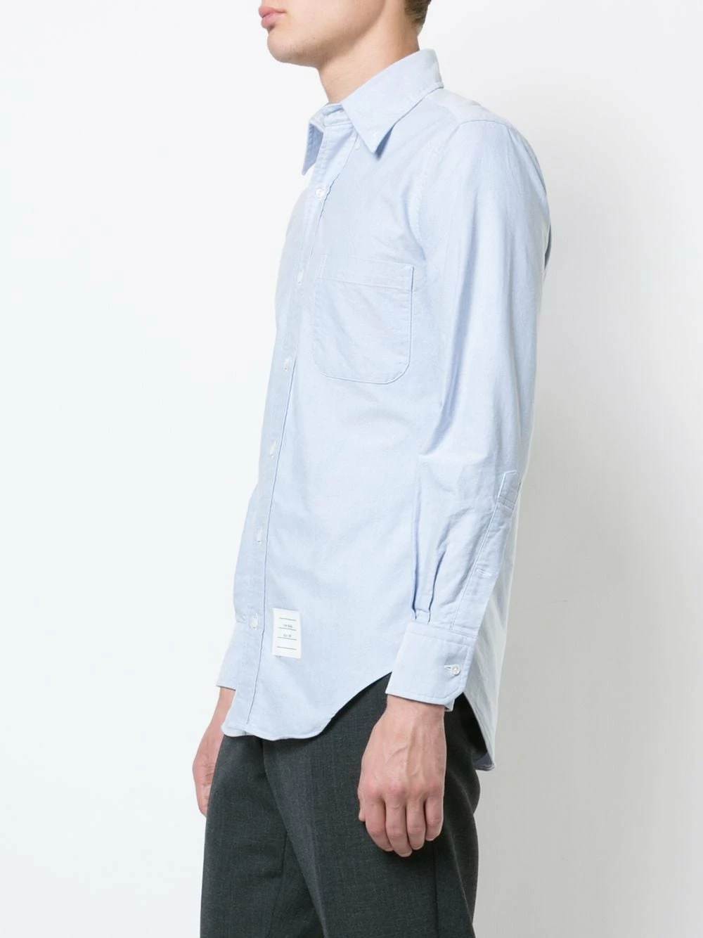 A true gentleman’s wardrobe wouldn’t be complete without the right shirt. Make yours this light blue cotton slim Oxford Shirt from Thom Browne. A classic. Featuring a slim fit, a button-down collar, a front button fastening, long sleeves, a front logo patch and button cuffs.