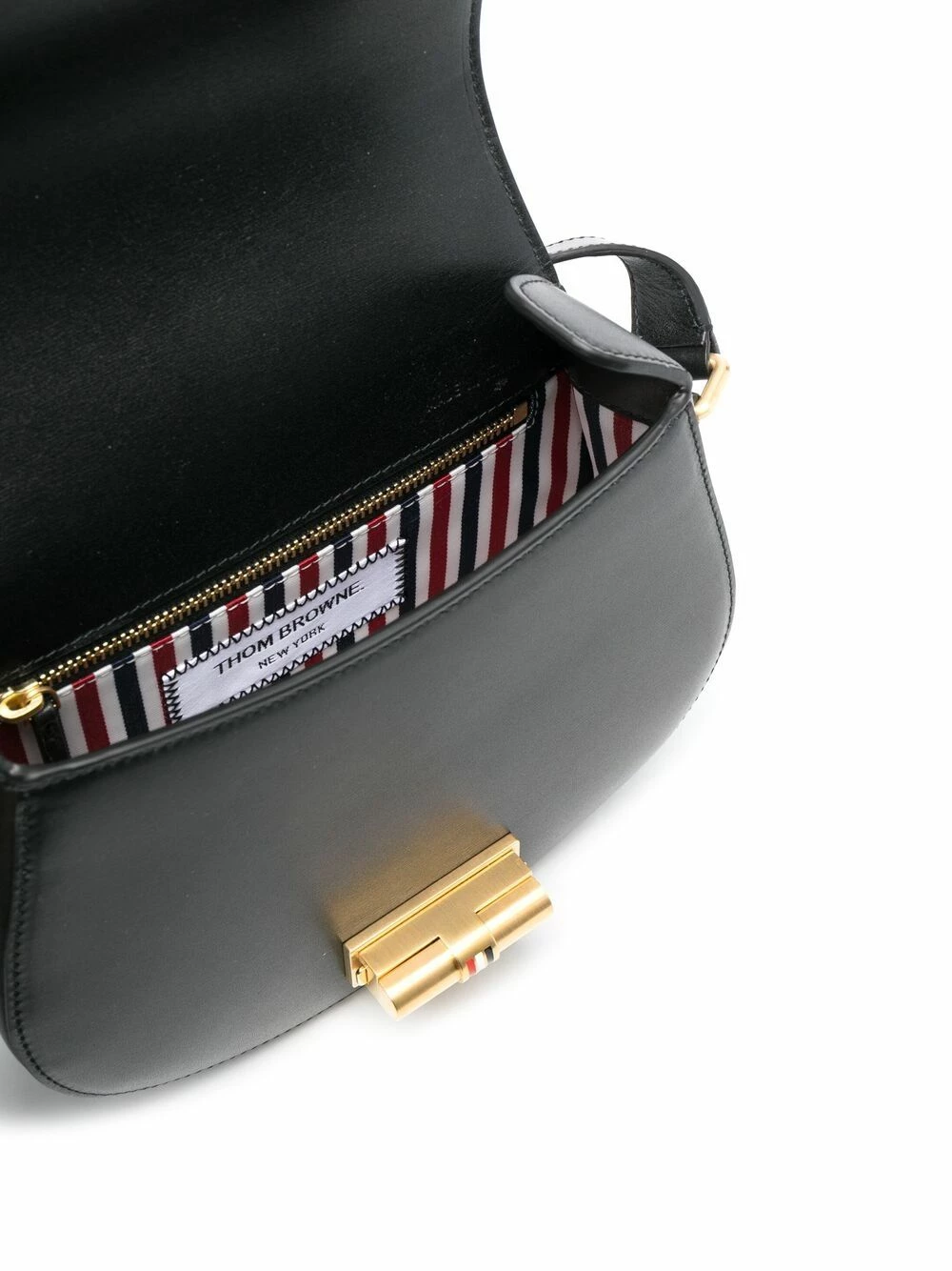 Your look doesn’t feel complete without a Thom Browne piece. Enter this RWB-lock shoulder bag. Immaculately crafted, it will add a sophisticated touch to your daily uniform.