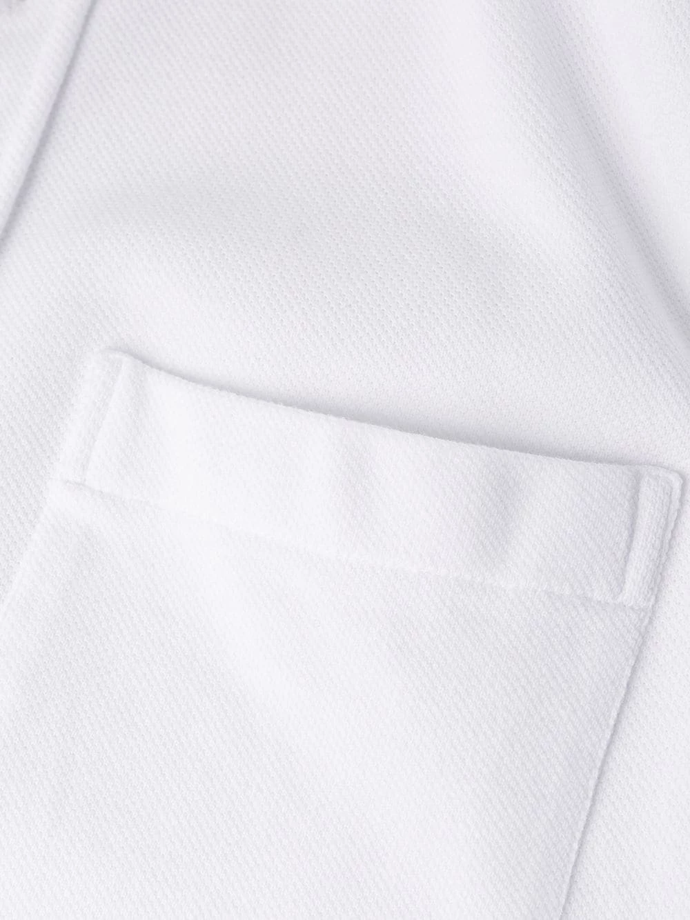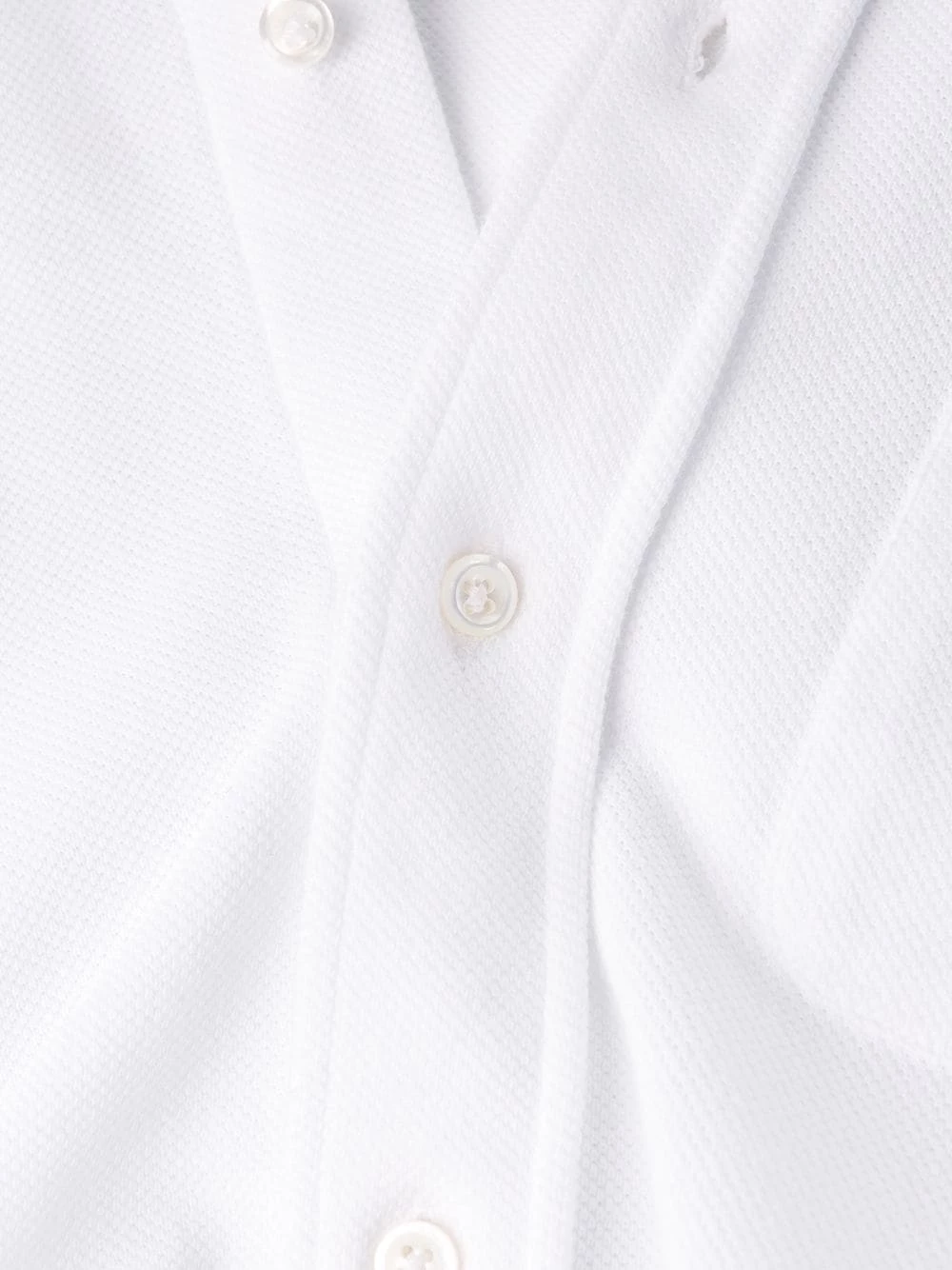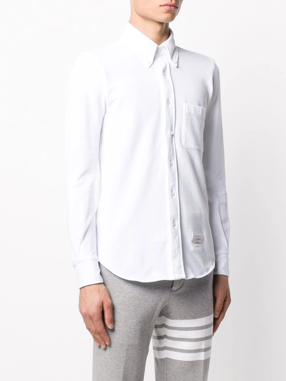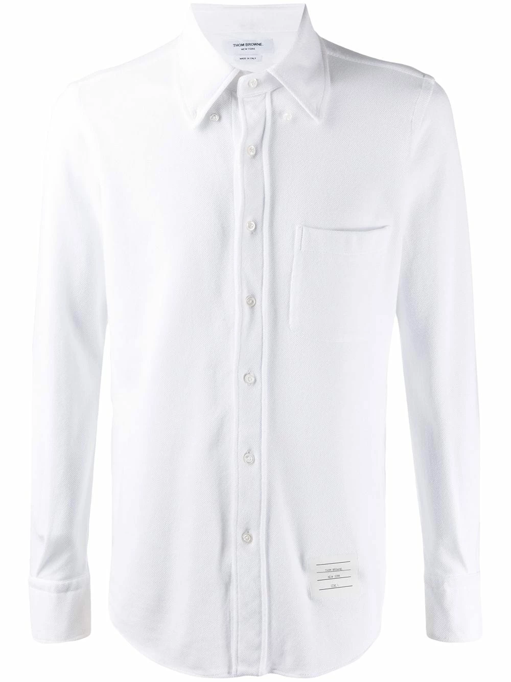 Like T-shirts, one can never have too many white shirts. Crafted in white cotton, this straight-fit piqué shirt from Thom Browne sports a barely visible textured finish. Subtlety is key. Featuring a button-down collar, long sleeves, button cuffs, a chest pocket, a front logo patch, a curved hem and a straight fit.