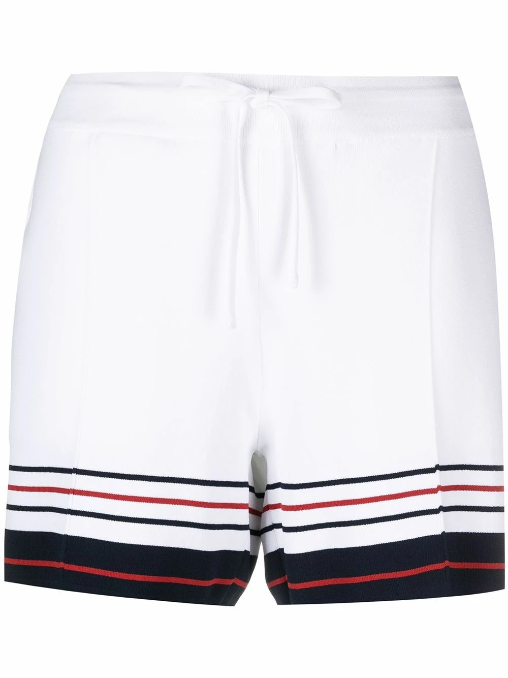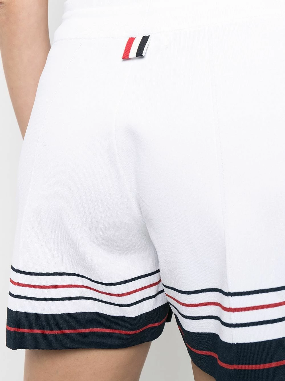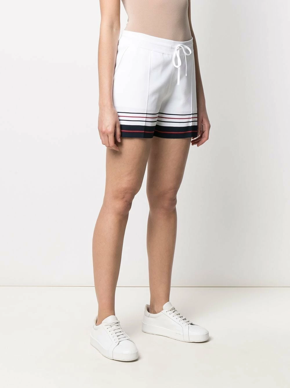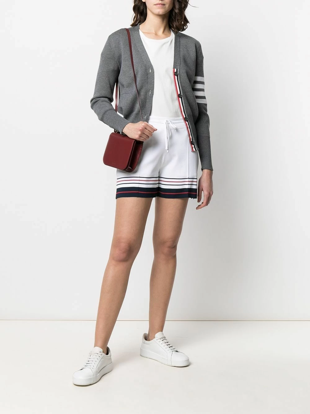 Perfect for travelling from the sofa to the fridge and the groceries store, these Thom Browne white track shorts will be there for snack time, yoga class or any other moment when comfort is key. What’s your mood today?