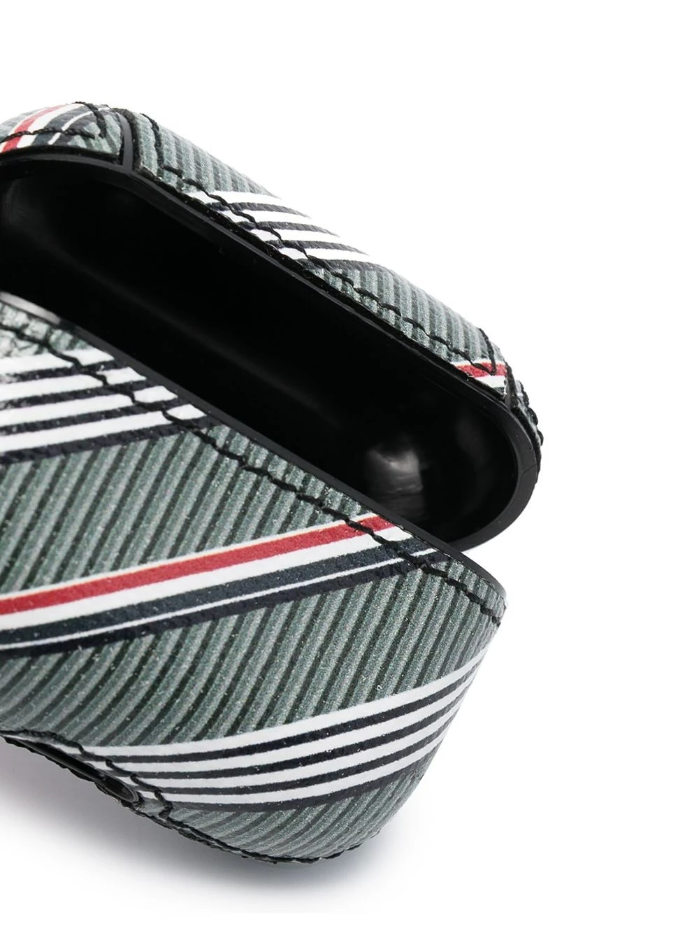 Thom Browne mixes things up with this AirPods case. The designer combines vertical stripes with two signature house motifs, the RWB stripe and the 4-Bar stripe, creating a design that adds a fresh twist to a classic pattern.